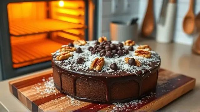 Bake time: Pour the batter into a greased and floured 9x13-inch baking pan. If desired, sprinkle nuts, coconut, or chocolate chips on top before baking for added flavor and texture.