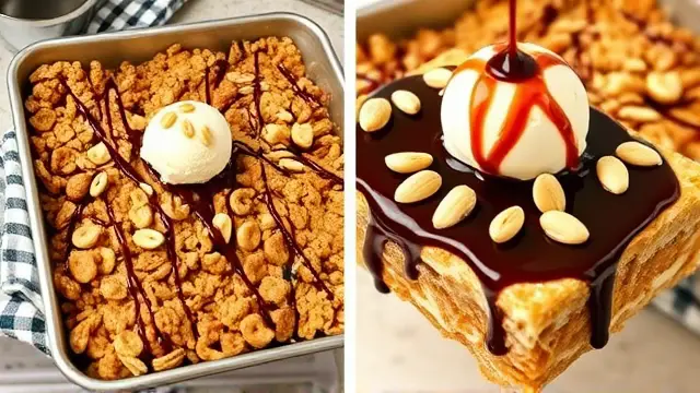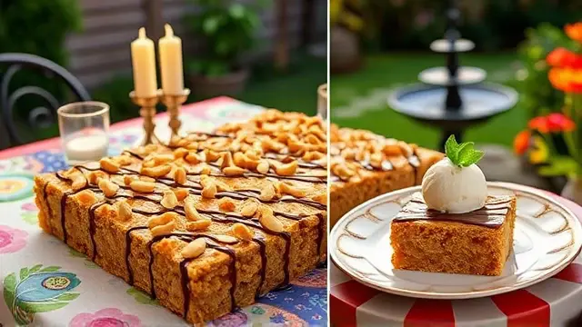 # Barbara's Irresistible Butter Bar Dessert 🍧🥜 Indulge in this mouthwatering Butter Bar Dessert that’s so simple yet irresistibly delicious! Perfect for parties, potlucks, or just a cozy night in, this dessert features a delightful crunch from Cocoa Krispies, a creamy peanut butter layer, and a smooth vanilla ice cream topping. Plus, the drizzle of rich chocolate syrup and the sprinkle of salted Spanish peanuts adds a satisfying finish. It’s a surefire crowd-pleaser that’s bound to leave everyone coming back for seconds! ## Ingredients ### For the base - 4 cups Cocoa Krispies cereal - ½ cup peanut butter (smooth or crunchy, depending on your preference) - ½ cup honey ### For the topping - 1 ½ gallons vanilla ice cream (let it soften slightly for easier spreading) - 1 can Hershey's chocolate syrup - Salted Spanish peanuts (for that crunchy finish) ## Instructions 1. **Prepare the base:** In a large bowl, combine the Cocoa Krispies cereal with the peanut butter and honey. Mix well until the cereal is evenly coated. > 🥜 Tip: For easier mixing, consider warming the peanut butter slightly in the microwave before combining. This will help it blend more smoothly with the honey and cereal! 2. **Press the mixture:** Pat the cereal mixture into a greased 9x13 inch baking pan, spreading it evenly across the bottom. 3. **Add the ice cream:** Spread the slightly softened vanilla ice cream on top of the Cocoa Krispy layer. Make sure to cover it completely for a delicious bite every time! 4. **Top it off:** Drizzle the Hershey's chocolate syrup over the ice cream and then sprinkle generously with salted Spanish peanuts. 5. **Freeze:** Place the pan in the freezer until fully set, about 4-6 hours or overnight if possible. 6. **Serve:** Before serving, let the dessert thaw slightly for easier cutting into squares. > ❄️ Pro Tip: For a more elegant presentation, you can cut the bars and serve them in cupcake liners! ## Tips & Variations - **Add some flair:** Consider mixing in some mini chocolate chips or M&M's with the cereal for an extra burst of flavor and color! 🍬 - **Nut-free option:** Swap peanut butter for sunflower seed butter for a nut-free alternative. It’s just as tasty! - **Drizzle variation:** Try caramel sauce instead of chocolate syrup, or even a combination of both for a decadent treat! - **Serving suggestion:** Pair with fresh berries or whipped cream for an added fruity touch! 🍓🍌 This delightful dessert serves about 18, making it perfect for sharing (though you might want to keep one or two for yourself)! Enjoy the bliss of layers and flavors in every bite! 🎉name