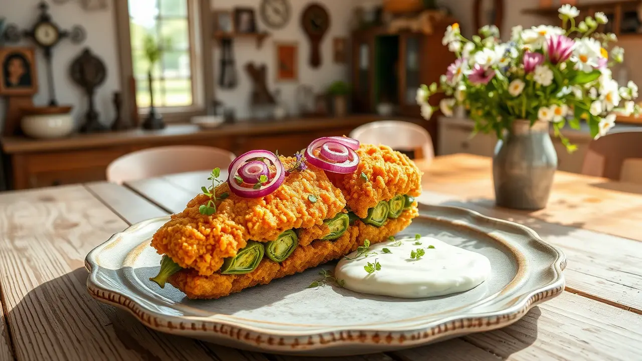 # Crispy Fried Okra with Cucumber Dill Sauce 🌱🥒 This delightful Southern dish is a crowd-pleaser and perfect for gatherings, picnics, or a cozy family night! The crispy fried okra pairs wonderfully with a cool, tangy cucumber dill sauce, creating a flavor explosion that’s both satisfying and refreshing. Serve it as an appetizer, snack, or side dish that everyone will rave about! ## Ingredients ### For the fried okra - 2 lbs. fresh okra (or frozen if fresh isn't available) - 1 cup breading mix (or your favorite seasoned flour) - 1 egg - 1 cup water - Vegetable oil for frying - Salt to taste ### For the dipping sauce - Cucumber dill sauce (or create your own with yogurt, dill, and cucumber) ## Instructions 1. **Prep the Okra**: Cut the okra into small, bite-sized pieces, discarding the stalks and tips. > 🍽️ Keeping the pieces uniform in size will ensure even cooking and crispiness! 2. **Make the Egg Wash**: In a bowl, whisk together the egg and water. Feel free to season with salt and pepper for added flavor. 3. **Drain and Coat**: Place the chopped okra in a colander to drain excess moisture, then dip each piece into the egg wash followed by coating with the breading mix, ensuring they are evenly covered. 4. **Heat the Oil**: In a cast iron skillet (or your preferred frying pan), heat vegetable oil over medium-high heat until it reaches about 350°F (175°C). > 🔥 A good test is to drop a small piece of breading into the oil; if it sizzles, you're ready to fry! 5. **Fry the Okra**: Carefully add the coated okra to the hot oil in batches. Fry until golden brown and crispy, approximately 4-5 minutes. 6. **Drain and Serve**: Once fried, remove the okra with a slotted spoon and drain on a plate lined with paper towels. Serve hot alongside the cucumber dill sauce for dipping. > 🥒 The contrast of crunchy okra with the creamy, cool sauce makes each bite a delight! ## Variations - **Spicy Kick**: Add cayenne pepper or your favorite hot sauce to the egg wash for a touch of heat! 🌶️ - **Seasoned Breading**: Mix in some garlic powder, paprika, or Italian herbs to your breading mix for extra flavor. - **Oven-Baked**: For a healthier version, coat the okra with oil and place them on a baking sheet. Bake at 425°F (220°C) for about 20 minutes, flipping halfway through, until crispy. ### Tips - **Fresh vs. Frozen**: While fresh okra will provide the best results, frozen okra can save time and still offer deliciously crispy bites. Just ensure they are thawed and drained well before breading. - **Storage**: Leftover fried okra can be stored in an airtight container in the fridge for up to 2 days. Reheat in the oven to retain crispiness before serving. Enjoy your crispy fried okra and the joy it brings to your table! 🎉name