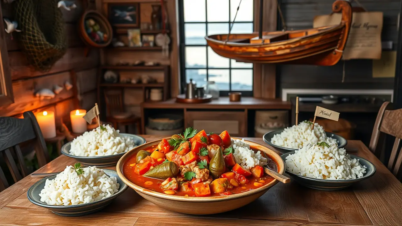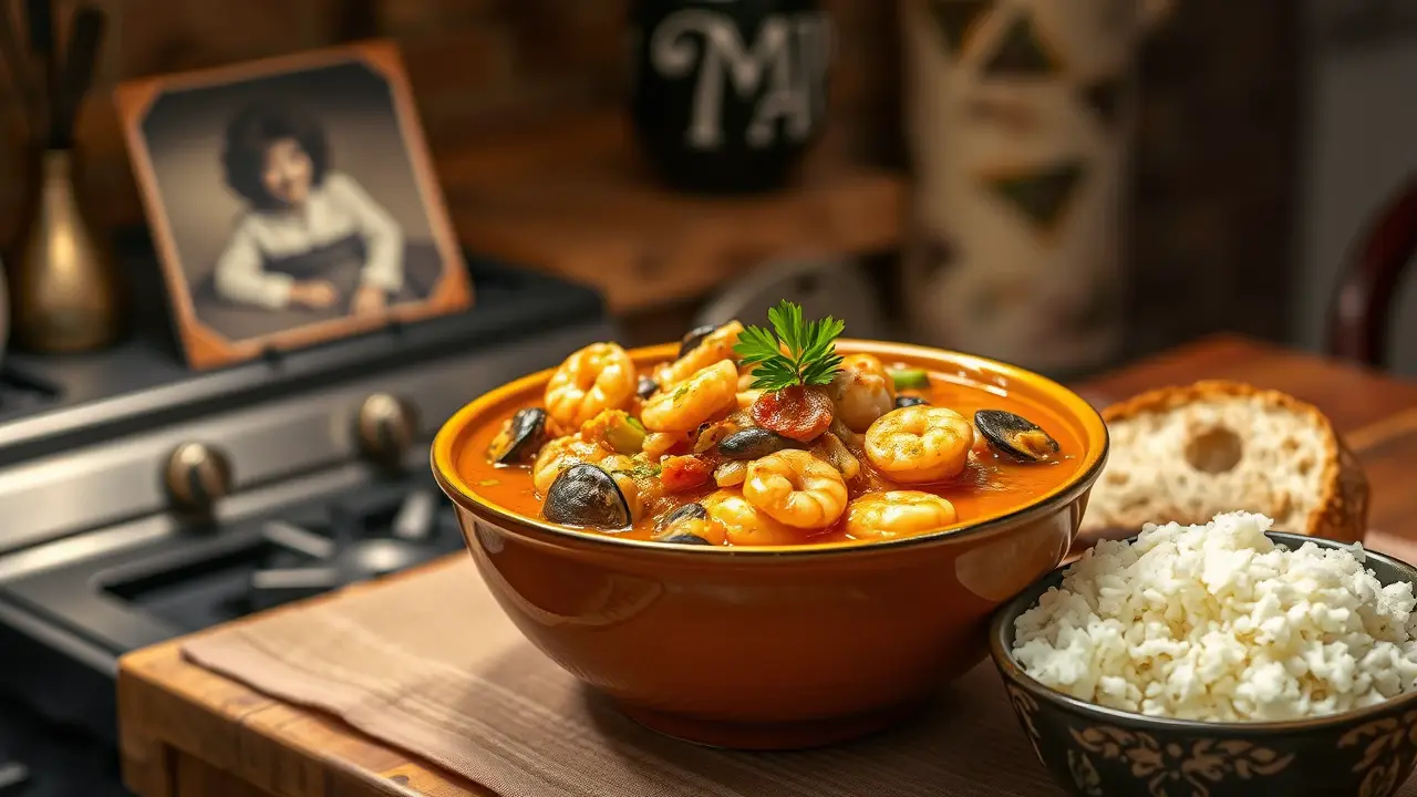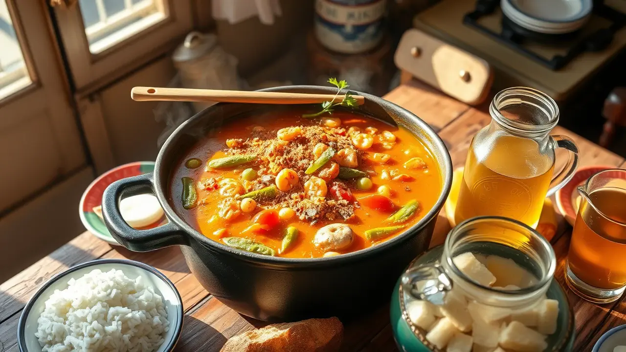 # Aunt Myrna's Seafood Gumbo 🍲🐟 Dive into this hearty and flavorful seafood gumbo that’s a true crowd-pleaser! Packed with fresh seafood and vibrant ingredients, this dish warms the soul and brings the taste of the coast right to your kitchen. Perfect for family gatherings or a cozy night in, this recipe serves up to eight, and trust us—there will be no leftovers! Pair it with steamed rice for a complete meal. 🍚 ## Ingredients ### Main Ingredients - 1/4 lb. butter (for a rich base) - 2 lbs fresh okra (adds a lovely texture) - 4 tbsp flour (to create a roux) - 5 fresh tomatoes (a must for that tangy flavor) - 2 lbs fresh fish (grouper is best for its flakiness) - Cajun seasoning blend to taste (feel free to spice it up!) - 2 quarts water - 1 pint raw oysters (for a briny touch) - 2 lbs raw shrimp (de-veined for convenience) - 1 lb. fresh crab meat (the star of the show!) - Salt and pepper to taste ## Instructions 1. **Make the Roux**: Melt the butter in a large pot and gradually stir in the flour to create a smooth paste. Keep the heat low and stir constantly to avoid burning. This step is crucial for developing rich flavors! > 🍳 Pro Tip: Patience is key! A well-made roux should achieve a golden-brown color, which adds depth to the soup. 2. **Combine Ingredients**: Add the water, chopped tomatoes, and finely sliced okra to the roux. Cook slowly for about 1 hour, allowing the flavors to meld. > ⏱️ Time Check: Stir occasionally to prevent sticking and to build that rich gumbo base. 3. **Add the Seafood**: Gently fold in the crab meat, oysters, boned and skinned fish, and de-veined shrimp. 4. **Final Cooking**: Allow the mixture to cook for an additional 15 minutes, stirring occasionally. Season with Cajun blend, salt, and pepper to taste. 5. **Serve**: Spoon the gumbo into bowls and add a scoop of steamed rice to each portion for that perfect touch. > 🍚 Serving Suggestion: Garnish with fresh herbs or scallions for an extra pop of freshness! ## Variations - **Spicy Kick**: Add chopped jalapeños or a dash of hot sauce for heat. - **Vegetarian Option**: Load up on more vegetables like bell peppers and zucchini and skip the seafood. Use vegetable broth instead of water for added flavor. - **Freezer Friendly**: This gumbo freezes well! Make a large batch and save some for later. - **Cultural Twist**: Experiment with different seafood based on what's local or fresh—clams or mussels can bring a delightful change! > 🌊 Join Aunt Myrna's tradition of sharing family meals and memories—each bowl tells a story!name