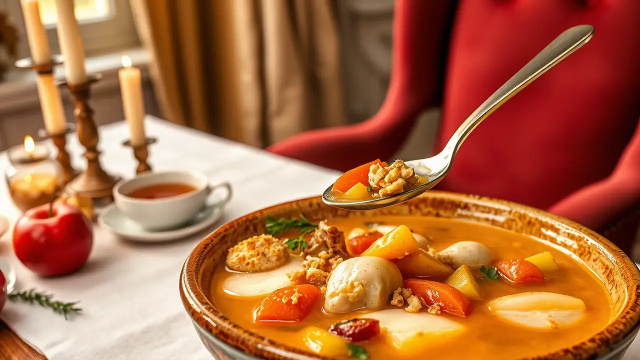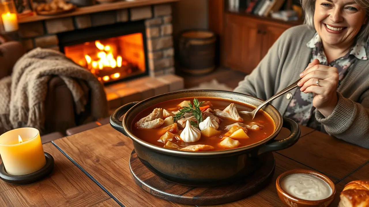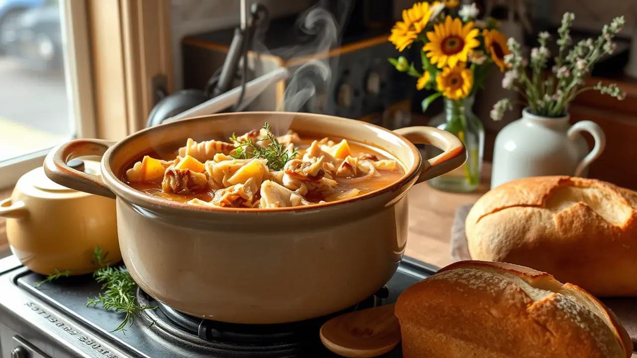 # Aunt Sylvia's Heartwarming Turkey Stew π¦π₯ This comforting turkey stew is a family favorite that transforms leftovers into a delicious meal that warms the soul. Perfect for chilly days or when you need a bit of nostalgia, this stew is hearty, flavorful, and easy to make. Each spoonful is packed with tender turkey and rich broth, bringing smiles to the dinner table! Serve it with crusty bread for the ultimate cozy experience. πβ¨ ## Ingredients - 1 turkey carcass with considerable meat - 2 tablespoons of flour - 1 large onion, chopped - Salt and pepper to taste - 1 sprig of thyme - Enough water to cover the turkey carcass ## Instructions 1. **Prep the Broth**: Break up the turkey carcass and place it in a large kettle. Add the chopped onion, seasoning with salt, pepper, and the sprig of thyme. Pour in enough water to cover everything. > π§ Remember, a good broth is the foundation of a great stew, so feel free to add any leftover vegetables you have on hand for extra flavor! 2. **Simmer Away**: Cook over medium heat until the meat falls off the bones, about 1 to 2 hours. Keep an eye on the water level, adding more if necessary. 3. **Strain and Chop**: Once the meat is tender, carefully remove all the bones. Take a moment to chop the turkey into small, bite-sized pieces. 4. **Thicken the Stew**: In a small bowl, mix the flour with Β½ cup of the broth to create a smooth paste. Add this mixture to the boiling soup to thicken it. 5. **Final Touches**: Stir in the chopped turkey and continue to cook until the stew thickens to your desired consistency. > π₯ For added depth, consider throwing in a bay leaf while the stew simmers. Just remember to remove it before serving! ## Variations - **Vegetable Boost**: Add diced carrots, celery, or potatoes during the simmering stage for a more hearty stew! π₯π₯ - **Spicy Kick**: Throw in a pinch of red pepper flakes or a splash of hot sauce to give your stew a bit of heat! - **Leftover Magic**: This is a fantastic way to use up holiday turkey! Just make sure to trim any excess fat for a healthier soup. Feel free to get creative with your ingredients and enjoy the warmth of this cherished family recipe! πname