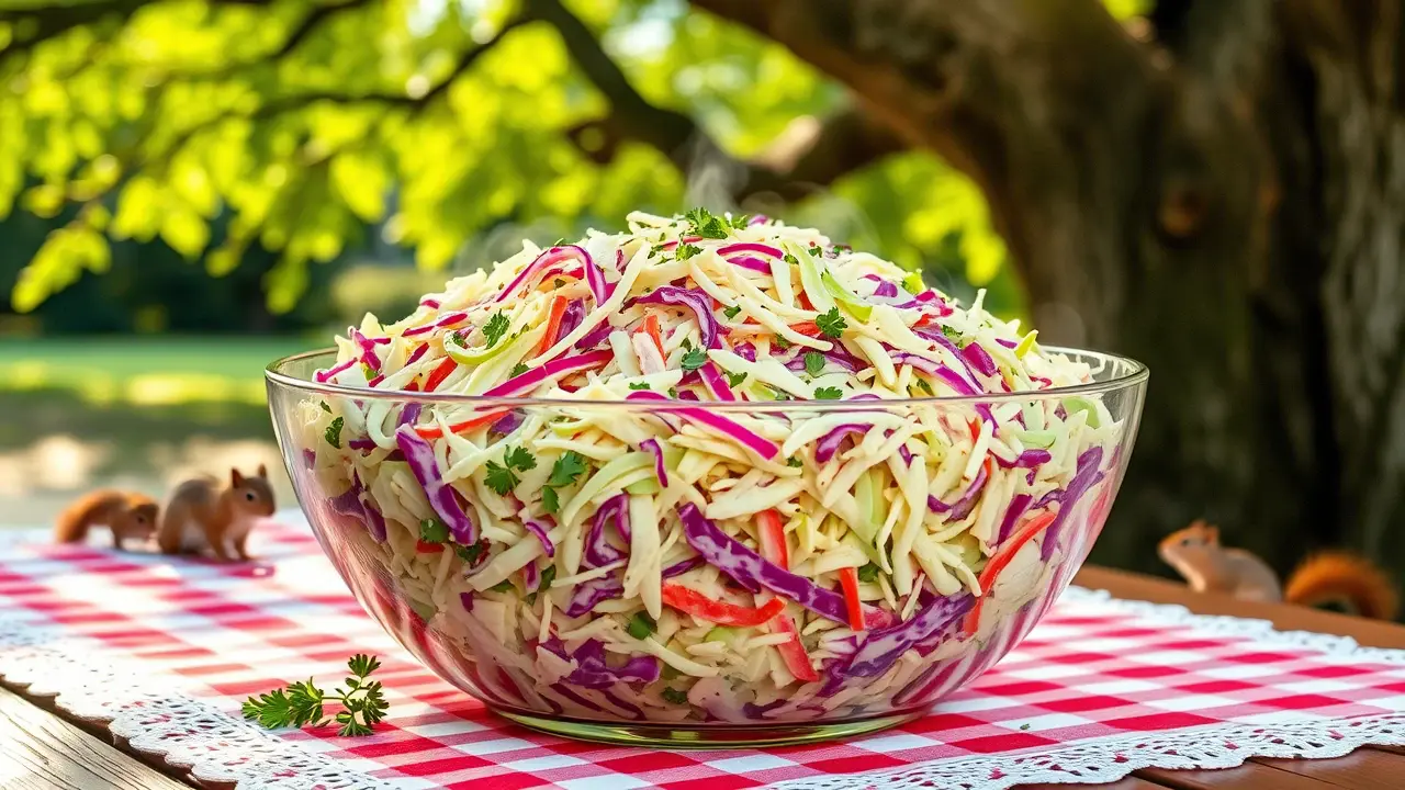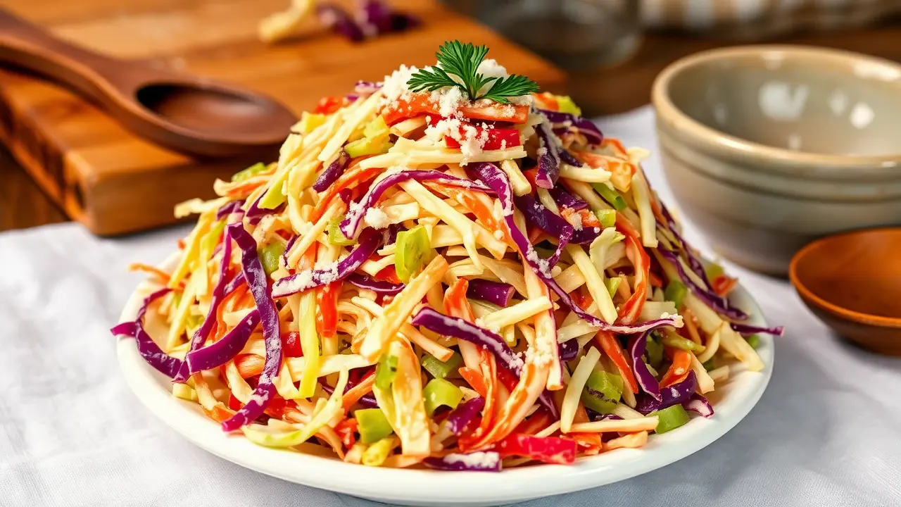 # Hyman's Deli-Style Cole Slaw 🥗✨ This deli-style cole slaw is a vibrant and refreshing side dish, perfect for summer barbecues, picnics, or any family gathering. With its crisp texture and tangy flavor, it's sure to elevate any meal. The combination of green and red cabbage adds a pop of color to your table, making it as visually appealing as it is delicious! ## Ingredients - 2 heads of green cabbage, shredded - ½ cup of mayonnaise - ½ cup of relish - ⅓ cup of mustard - 1 tablespoon of celery seed - ¼ cup of sugar - ¼ cup of wine vinegar - ¼ head of red cabbage, chopped ## Instructions 1. Start by shredding the green cabbage into thin slices. Mix the shredded cabbage in a large bowl with the chopped red cabbage for a striking color contrast. > 🥬 Using a sharp knife or a mandoline will give you uniform pieces, which helps with texture and presentation. 2. In a separate bowl, whisk together the mayonnaise, relish, mustard, celery seed, sugar, and wine vinegar until smooth. > 🍯 For a zesty kick, consider adding a splash of hot sauce or a teaspoon of cayenne pepper to the dressing! 3. Pour the dressing over the cabbage mixture and toss until everything is well coated. 4. Cover the bowl and refrigerate for at least an hour, or until chilled to around 45 degrees. > ❄️ Chilling allows the flavors to meld together, making the slaw even tastier. ## Variations - **Creamy Vegan Option**: Substitute mayonnaise with a vegan mayo or a blend of blended avocado and lemon juice for a healthier twist. 🥑 - **Crunchy Add-ins**: For extra texture, toss in some shredded carrots, sliced bell peppers, or chopped apples. - **Herbed Delight**: Add fresh herbs such as dill or parsley to the slaw for a burst of freshness! - **Spicy Version**: If you prefer a spicy flavor, mix in some sliced jalapeños or a dash of chili powder. Serve this crisp and tangy cole slaw alongside grilled meats or as a topping for sandwiches or tacos. Its refreshing crunch is bound to impress your guests! Enjoy! 🎉🥗name