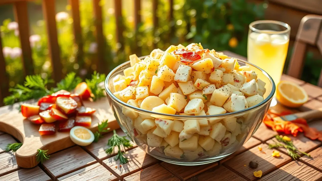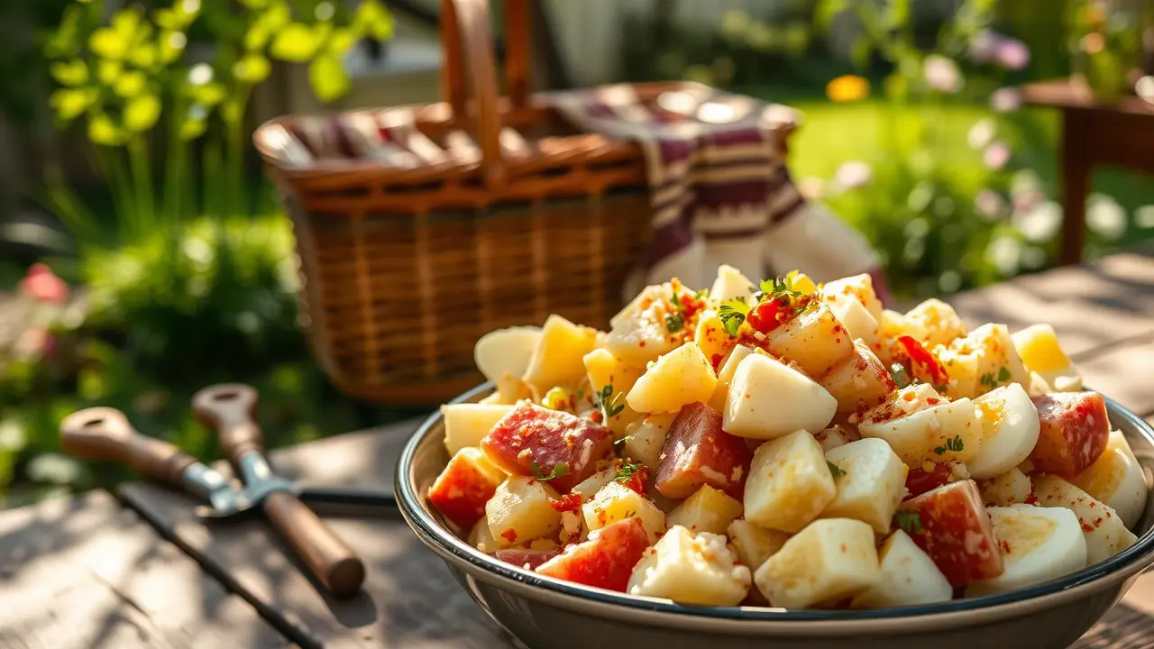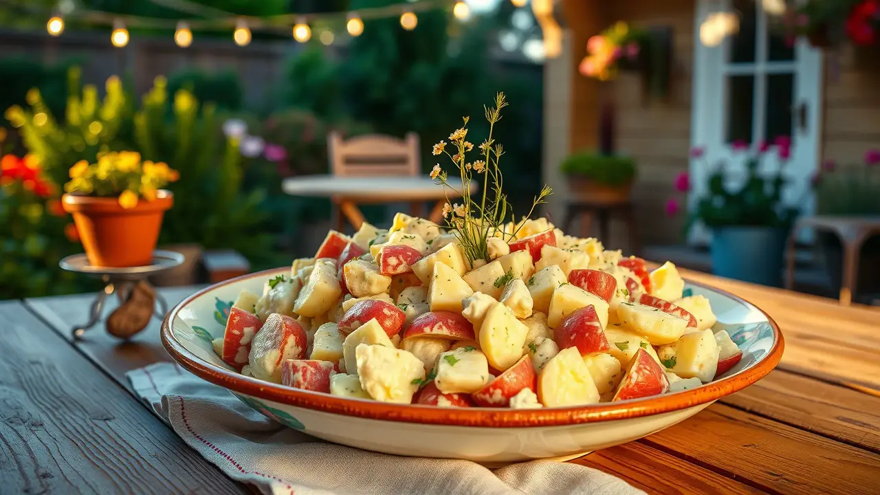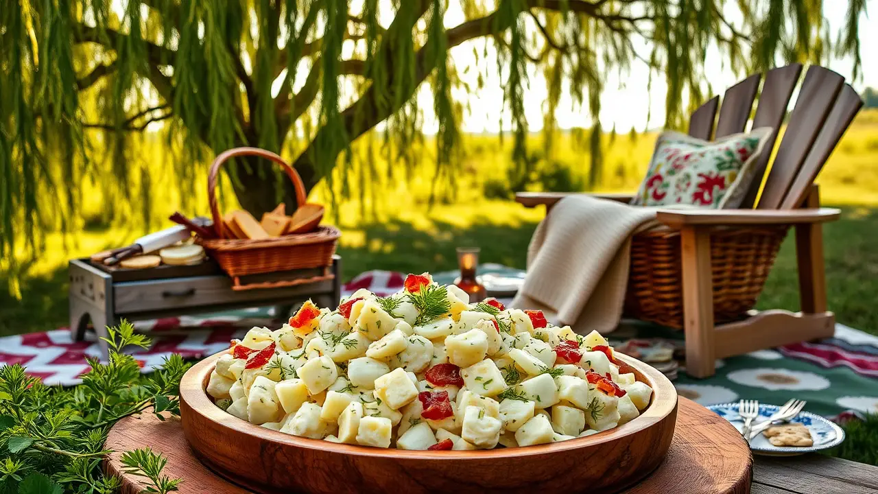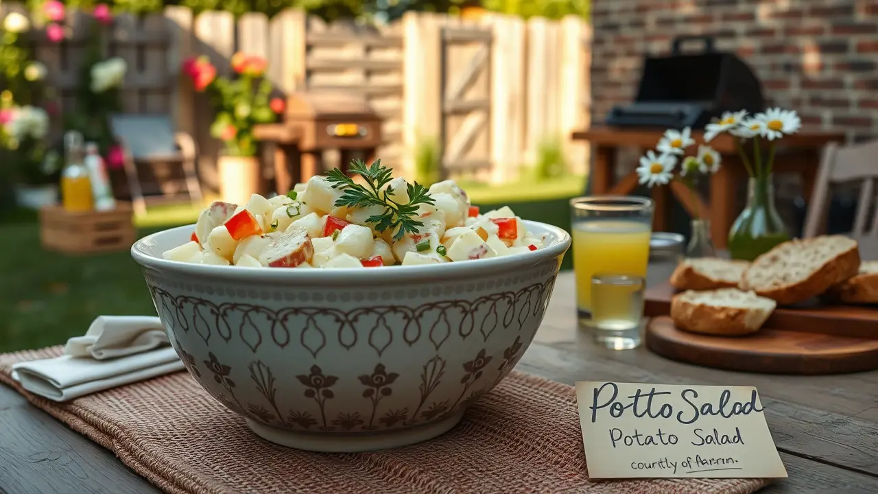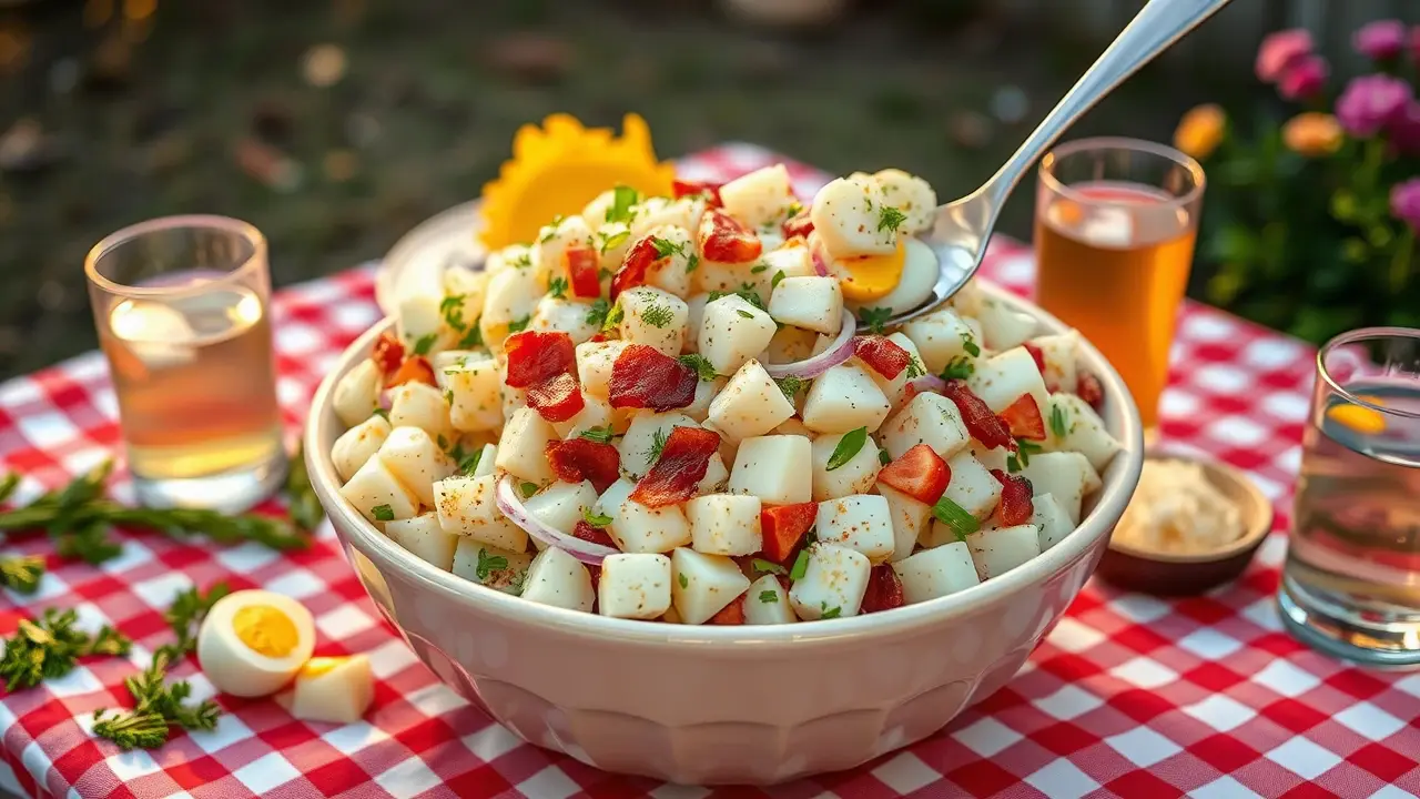 # Aaron's Classic Deli Potato Salad 🥔🥗 This creamy and flavorful potato salad is a staple at picnics, barbecues, and family gatherings. It's easy to make and can be prepared in advance, making it a perfect dish for entertaining or simply enjoying during the week. The combination of potatoes, eggs, and tangy dressing creates a delightful balance that everyone will love! Consider serving it alongside grilled meats or as part of a summer spread. ## Servings 4-6 servings ## Ingredients - 8 large red potatoes - 1½ tsp salt - 1½ cups mayonnaise - ¼ cup relish - 3 large eggs - ¼ tsp ground black pepper - ¼ cup yellow mustard - Pinch of paprika ## Instructions 1. **Boil the Potatoes**: In a large pot, add the potatoes and cover them with water. Add 1½ tsp of salt. Bring to a boil and cook until the potatoes are tender, but not mushy. A fork should meet a little resistance when inserted. Cooking time may vary depending on the potato size. > ⏰ Pro Tip: Cut your potatoes into uniform sizes for even cooking! 2. **Cook the Eggs**: In another pot, add the eggs and cover them with water. Bring to a boil, then reduce heat to medium-high and let simmer for 9-12 minutes for hard-boiled eggs. 3. **Cool Down**: Once potatoes and eggs are cooked, allow them to cool. You can run cold water over them to speed up the cooling process. 4. **Chop It Up**: Slice the potatoes into bite-sized chunks. Peel the eggs and slice them into halves or quarters, depending on your preference. 5. **Mix It All Together**: In a large mixing bowl, gently combine the potatoes, eggs, mayonnaise, relish, ground black pepper, yellow mustard, and a pinch of paprika. > 🥄 Be gentle when mixing to keep the potatoes intact and prevent them from becoming mushy. 6. **Chill Before Serving**: Once everything is mixed thoroughly, transfer the salad to a serving bowl and refrigerate until ready to serve. This allows the flavors to meld beautifully! > ❄️ Chilling for at least an hour is ideal! ## Variations - **Herb Infusion**: Add fresh chopped herbs like dill, parsley, or chives for an extra burst of flavor. - **Spicy Kick**: Mix in some diced jalapeños or a splash of hot sauce for a zesty twist. - **Bacon Lover's**: Stir in crispy bacon bits for an irresistible crunch. - **Vegan**: Substitute mayonnaise with a plant-based version and use avocado as a creamy alternative. This potato salad is sure to become a favorite at your gatherings, so whip up a batch and enjoy the compliments! 🥳🥗name