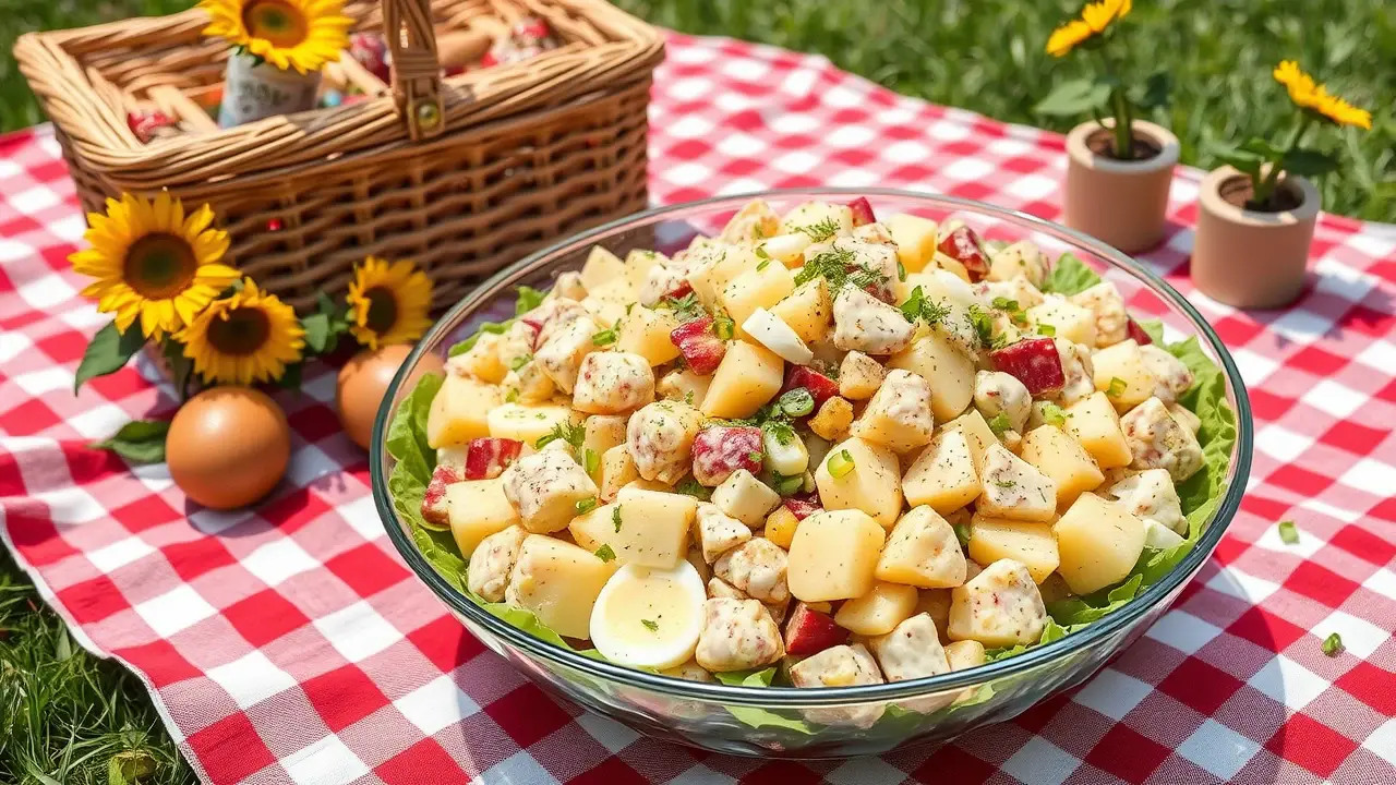 This creamy and flavorful potato salad is a staple at picnics, barbecues, and family gatherings. It's easy to make and can be prepared in advance, making it a perfect dish for entertaining or simply enjoying during the week. The combination of potatoes, eggs, and tangy dressing creates a delightful balance that everyone will love! Consider serving it alongside grilled meats or as part of a summer spread.