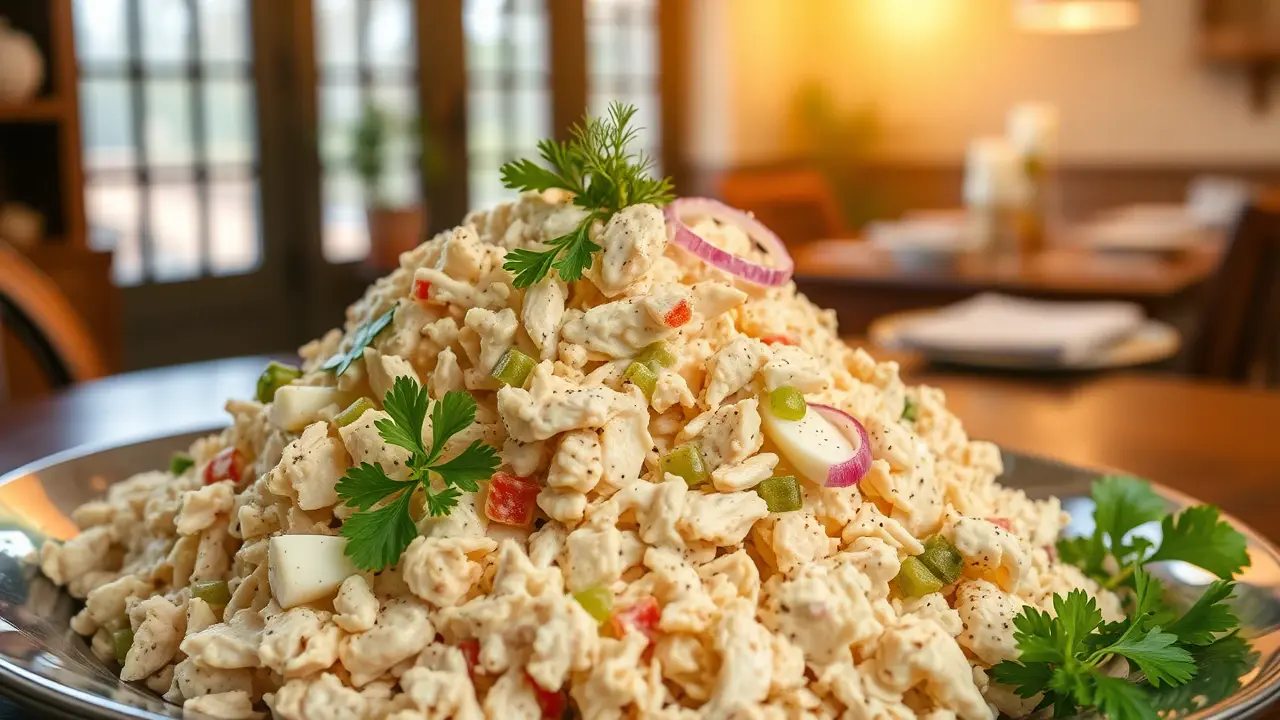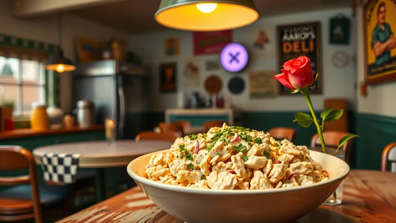# Aaron's Deli Chicken Salad 🥗🐔 This classic chicken salad recipe is not only easy to make but also incredibly versatile! Perfect for picnics, lunchboxes, or a quick dinner, this dish is a crowd-pleaser. The combination of savory chicken, creamy mayonnaise, and zesty relish makes every bite satisfying. Enjoy it on its own, in a sandwich, or on a bed of greens for a delightful meal! 🥪🌿 ## Ingredients ### Main Ingredients - 6 chicken breasts (7 oz each), unseasoned - ½ cup sweet relish - ¼ teaspoon pepper - 1 tablespoon yellow mustard - 2 large boiled eggs, chopped - ½ teaspoon salt - 1 ½ cups mayonnaise ## Instructions 1. **Bake the Chicken**: Preheat your oven and bake the unseasoned chicken breasts until fully cooked and juices run clear. This usually takes about 25-30 minutes at 375°F (190°C). > 🔥 Ensure the internal temperature of the chicken reaches 165°F (75°C) for safe consumption. 2. **Shred the Chicken**: Once the chicken is cooled, shred it into bite-sized pieces, depending on your texture preference. > 🥣 For easier shredding, you can use two forks or your hands (just be cautious of the temperature!). 3. **Mix the Ingredients**: In a large bowl, combine the shredded chicken, sweet relish, pepper, yellow mustard, chopped boiled eggs, salt, and mayonnaise. Stir until well-combined and creamy. > 🌱 Feel free to adjust the mayo to your liking; add a bit more for a creamier texture or less for a lighter salad. 4. **Chill**: Refrigerate the salad for at least 30 minutes to let the flavors meld and to cool down. > 🧊 This dish can be made a day in advance, making it perfect for meal prep or entertaining guests. ## Variations - **Crunchy Addition**: Add chopped celery, red onion, or bell peppers for extra crunch and vibrant color. 🥒🌶️ - **Herbed Flavor**: Incorporate fresh herbs like dill, parsley, or chives to enhance the flavor profile. - **Spicy Twist**: Mix in a dash of hot sauce or some diced jalapeños for a kick! 🔥 - **Low-Fat Option**: Substitute regular mayonnaise with Greek yogurt or a low-fat mayo for a lighter version without sacrificing taste. With its simple preparation and delicious flavor, this chicken salad will quickly become a staple in your recipe collection. Enjoy! 🥳🍽️name