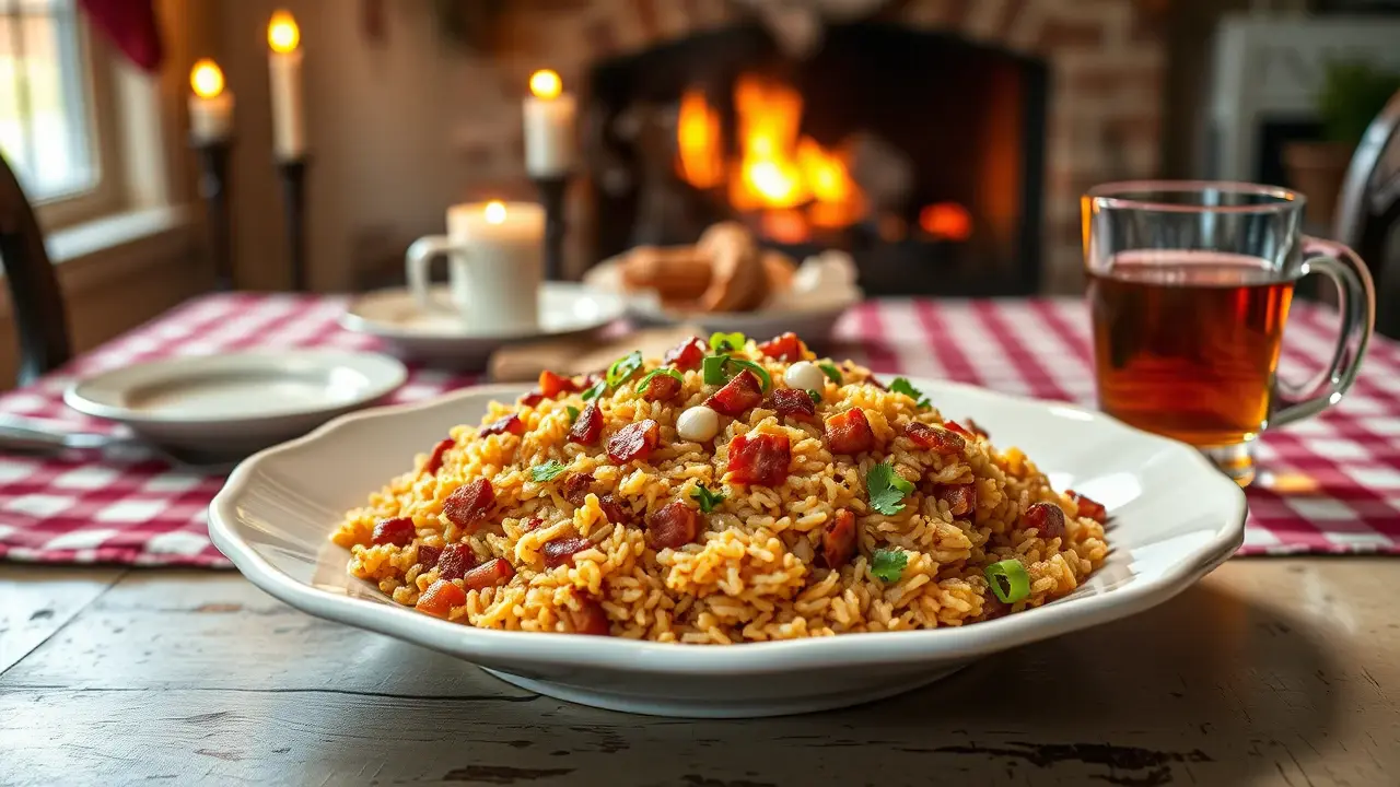 This hearty and flavorful dish combines the comforting elements of fried rice with a Southern twist! It's an easy one-pan meal that’s perfect for any weeknight dinner or as a side for gatherings. Each spoonful is packed with the smoky goodness of bacon, sautéed veggies, and perfectly seasoned rice. Serve it alongside your favorite protein for a complete meal, or enjoy it as a delicious standalone comfort food. 🌟