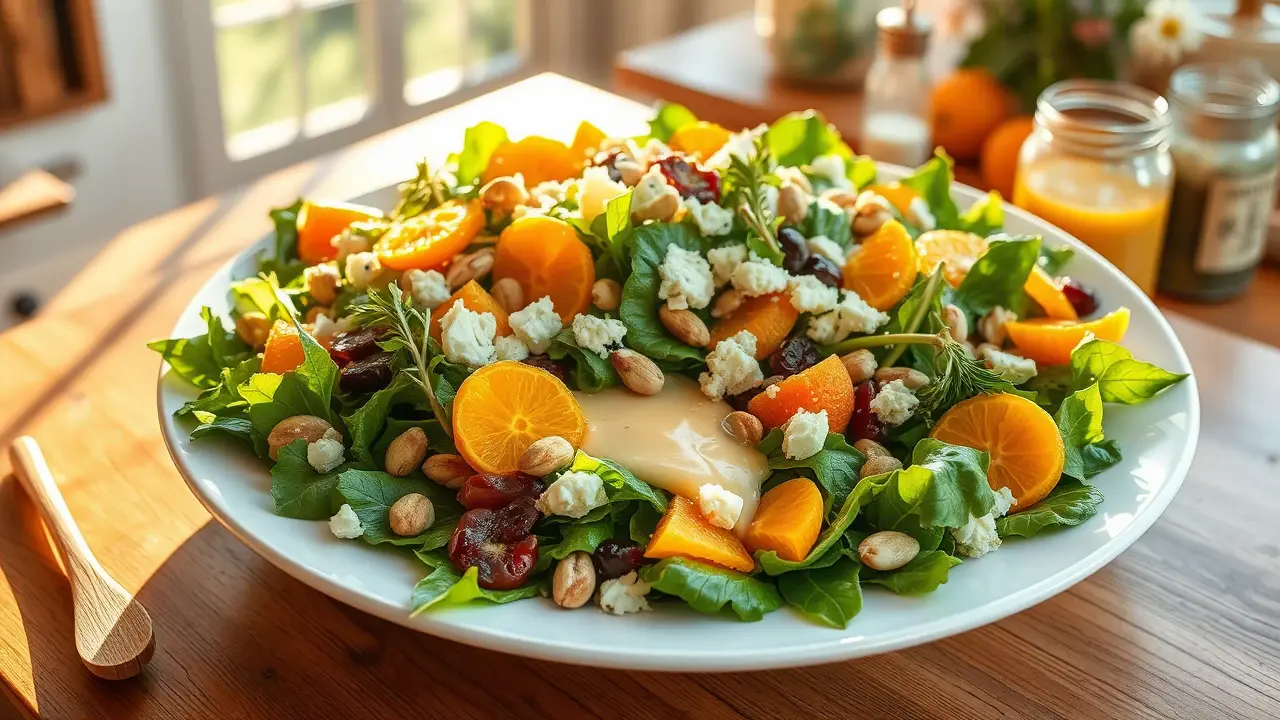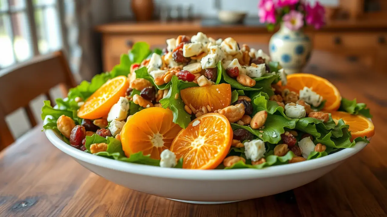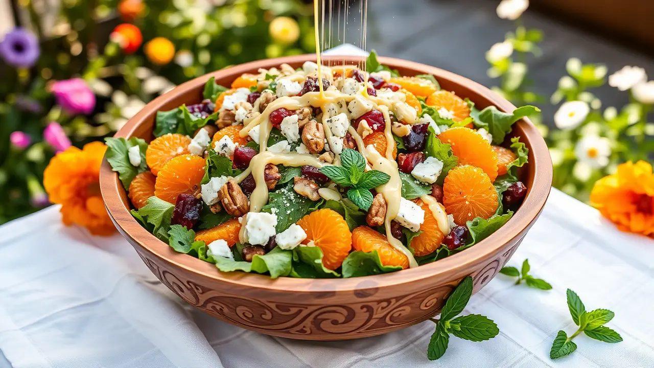 # Aunt Lyndaβs Great Salad π₯π This delightful salad is a vibrant medley of flavors that comes together effortlessly. With the refreshing taste of mandarin oranges paired with the crunch of macadamia nuts and the creamy richness of blue cheese, it's sure to impress at any gathering. The poppy seed and honey mustard dressings add a sweet and tangy touch that elevates the entire dish. Perfect as a side or a light main course, enjoy it on warm days or whenever you're craving something fresh! π ## Ingredients ### For the salad - 1 can of mandarin oranges, drained - 1 handful of small macadamia nuts - 1 package of crumbled blue cheese - 2-3 bags of mixed greens ### For the dressing - 1 jar of poppy seed dressing - 1 handful of white raisins - Β½ jar of honey mustard dressing ## Instructions 1. In a large salad bowl, combine the mandarin oranges, macadamia nuts, blue cheese, and mixed greens. > π₯ Toss gently to mix the ingredients without breaking the greens or cheese. Adding the ingredients in the order listed helps to evenly distribute the textures and flavors. 2. In a separate bowl, mix together the poppy seed dressing, white raisins, and honey mustard dressing. 3. Pour the dressing over the salad and toss until everything is well-coated. > π₯ Feel free to adjust the amount of dressing based on your taste preferences. More dressing can enhance the flavor, but be cautious not to overwhelm the fresh ingredients. ## Variations - **Nut-free**: Substitute macadamia nuts with sunflower seeds for a crunchy texture without the nuts. - **Fruit swap**: Try adding fresh berries or sliced apples for an additional burst of flavor and nutrition! ππ - **Vegan**: Replace blue cheese with a dairy-free cheese option or skip it entirely. Add chickpeas for protein and texture. - **Extra crunch**: Toss in some crispy bacon or toasted seeds for a savory contrast to the sweetness of the dressing. Indulge in this great salad, and let every bite take you to a happier place, just like a heartwarming melody. Enjoy! πΆπ₯name