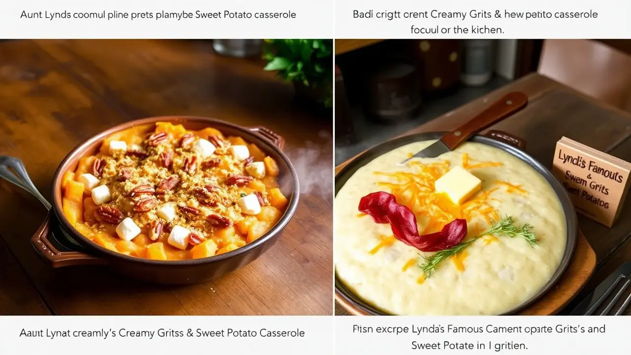 # Aunt Lynda's Creamy Grits & Sweet Potato Casserole 🍚🥔 These two comforting dishes are perfect for family gatherings and celebrations! Aunt Lynda’s creamy grits are rich and flavorful, while the sweet potato casserole is a delightful mix of sweet and savory, topped with a gooey layer of mini marshmallows. Whether served for breakfast or as a side dish for dinner, you'll love how these recipes bring warmth to the table! ## Aunt Lynda's Creamy Grits ### Ingredients - 2 ½ cups chicken broth - 4 tbsp butter - ¾ cup quick white grits - 3 tbsp cream cheese - 2 tbsp half & half - ½ cup chopped onions ### Instructions 1. In a saucepan, bring chicken broth to a boil. Add the chopped onions, and then slowly whisk in the grits. 2. Cook according to package instructions, stirring occasionally, until thickened. 3. Once cooked, remove from heat and stir in the butter, cream cheese, and half & half until creamy and well combined. > 🥣 For extra flavor, consider sautéing the onions in butter before adding them to the grits. This will add a lovely caramelized note to the dish! --- ## Sweet Potato Casserole ### Ingredients - 2 medium or large cans of cut sweet potatoes - 1 large can crushed pineapple, drained - **Topping:** - 1 small can shredded coconut - ½ cup chopped pecans - 1 stick melted butter - ¾ bag mini marshmallows - 2 tbsp apricot preserves ### Instructions 1. Preheat your oven to 350 degrees F (175 degrees C). 2. In a large mixing bowl, combine sweet potatoes and crushed pineapple. Stir until well mixed, then pour into a greased casserole dish. 3. In another bowl, mix together the coconut, pecans, melted butter, and marshmallows. Spoon this mixture evenly over the sweet potato layer. 4. Drizzle the apricot preserves on top of the marshmallow layer for an extra touch of sweetness. 5. Bake in the oven for 45 minutes until the topping is golden and bubbly. > 🍬 The combination of coconut, pecans, and marshmallows creates a wonderful melody of flavors. Feel free to adjust these toppings based on your preferences! ## Serving Suggestions - **Grits**: Serve them as a hearty side dish alongside fried chicken or grilled shrimp for a Southern-style meal! Add a sprinkle of cheese or hot sauce for extra flavor. - **Sweet Potato Casserole**: This dish pairs beautifully with glazed ham or turkey and makes a fantastic addition to your holiday table. ## Variations - **Spicy Grits**: Stir in some diced jalapeños or a dash of hot sauce to give your creamy grits a little kick! 🌶️ - **Nut-Free Casserole**: Omit the pecans or replace them with sunflower seeds for a nut-free option. - **Vegan Adjustment**: Substitute the butter in both recipes with a plant-based alternative and use non-dairy cream cheese for a vegan-friendly version! Enjoy these comforting classics and watch them disappear at your next gathering! 🌟name