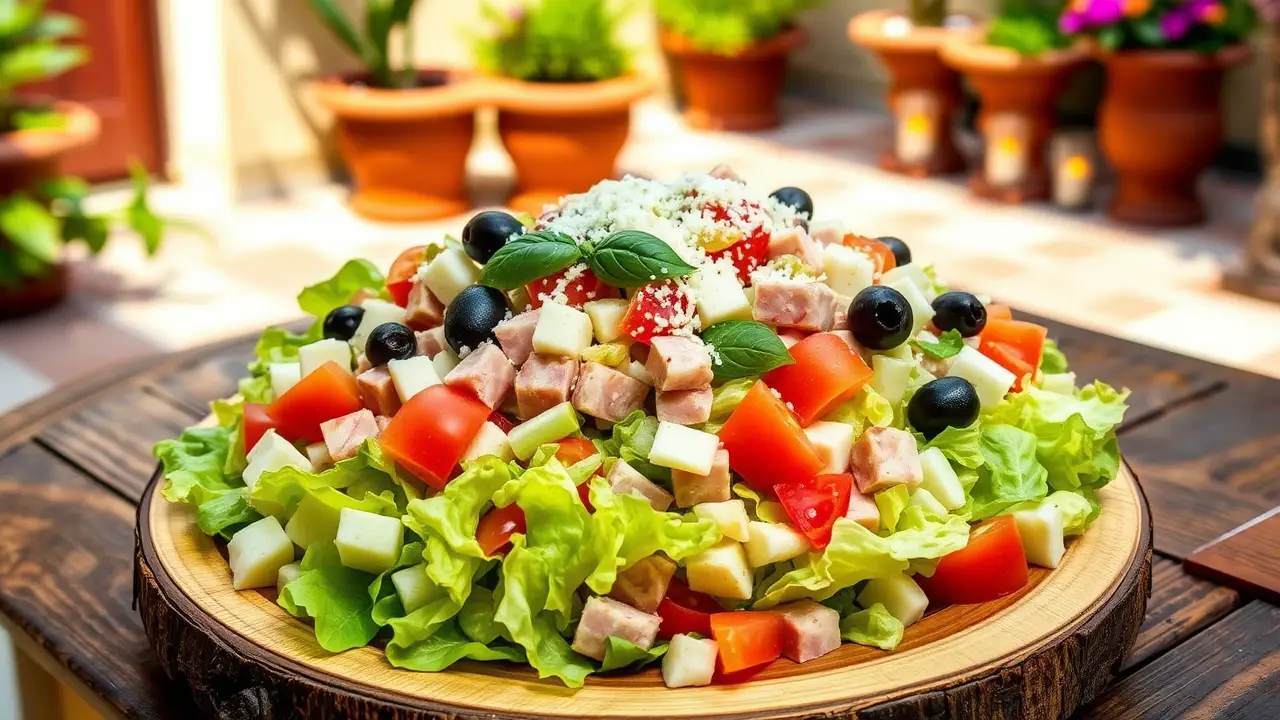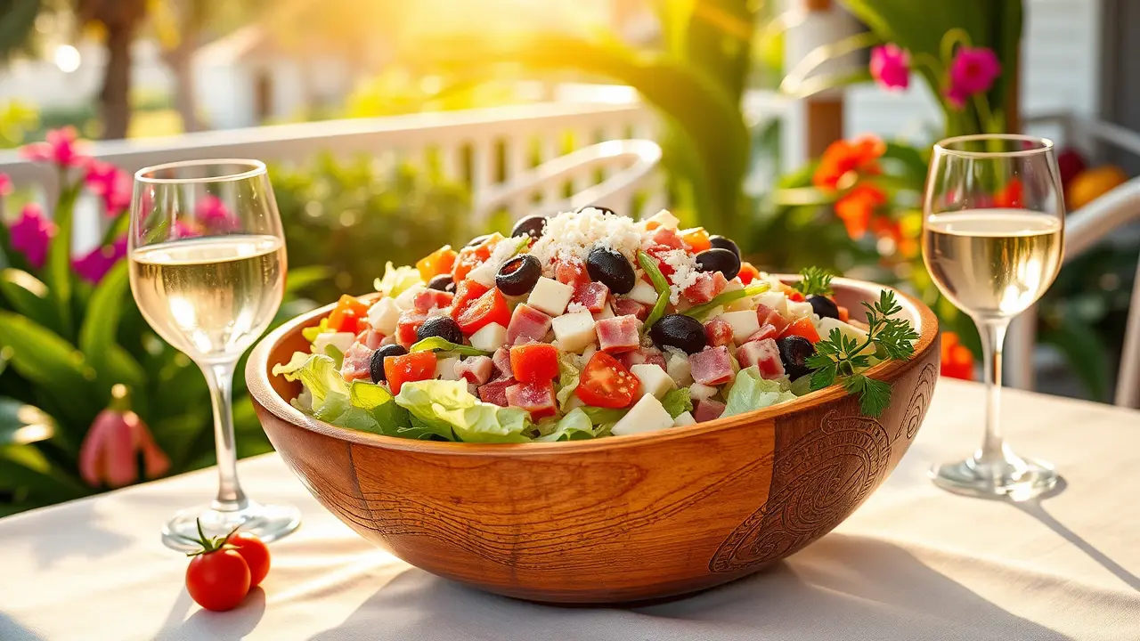 # Aunt Lynda's Sarasota Salad 🥗🌱 This refreshing salad is perfect for celebrating special anniversaries or just enjoying a delightful meal! Packed with vibrant flavors and textures, it combines the crunch of fresh vegetables with savory ingredients for a taste sensation. Celebrate your love with this simple yet scrumptious dish that will impress your partner and guests alike! ## Ingredients ### Dressing - 4 cloves of garlic, minced - 1 tsp oregano - 1 tsp Worcestershire sauce - ½ lemon, juiced - ⅓ cup olive oil - ⅛ cup white vinegar - Salt & pepper to taste ### Salad - 1 head iceberg lettuce, chopped - 2 fresh tomatoes, diced - 1 stalk celery, diced - 3 oz Swiss cheese, julienned - 5 oz ham, julienned - ½ cup pitted olives, sliced - 2 tbsp Romano cheese, grated ## Instructions 1. In a bowl, combine all the dressing ingredients: minced garlic, oregano, Worcestershire sauce, lemon juice, olive oil, white vinegar, and season with salt and pepper. > 🍋 Fresh lemon juice adds a zesty kick that enhances the overall flavor. Feel free to adjust the amount based on your taste preference! 2. In a large salad bowl, add the chopped iceberg lettuce, diced tomatoes, diced celery, julienned Swiss cheese, julienned ham, and sliced olives. 3. Pour the dressing over the salad ingredients and toss vigorously until everything is well coated. > 🥄 Tossing vigorously helps to distribute the dressing evenly, covering every bite with flavor! 4. Top with grated Romano cheese and serve immediately. > 🧊 For a make-ahead option, prepare the ingredients separately and toss with dressing just before serving to keep the lettuce crisp. ## Variations - **Mediterranean Twist**: Substitute the ham with grilled chicken or chickpeas and add feta cheese for a Mediterranean vibe. 🌿 - **Vegan Delight**: Omit the ham and cheese, and add avocado slices and your favorite plant-based protein source for a filling dish. 🥑 - **Extra Crunch**: Toss in your favorite nuts or seeds, like sunflower seeds or walnuts, for a delightful crunch. 🥜 - **Herb Infusion**: Add fresh herbs like basil or parsley for an aromatic lift. 🌿 No matter how you customize it, Aunt Lynda's Sarasota Salad is a delicious way to celebrate your special moments! Enjoy! 🎉💚name