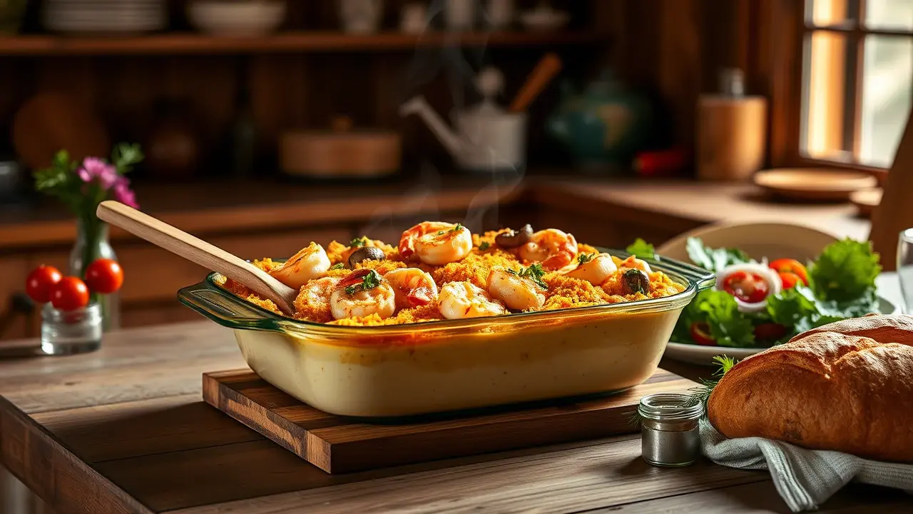 - Vegetarian: Substitute shrimp with sautéed mushrooms or a medley of your favorite vegetables for a tasty veggie casserole.