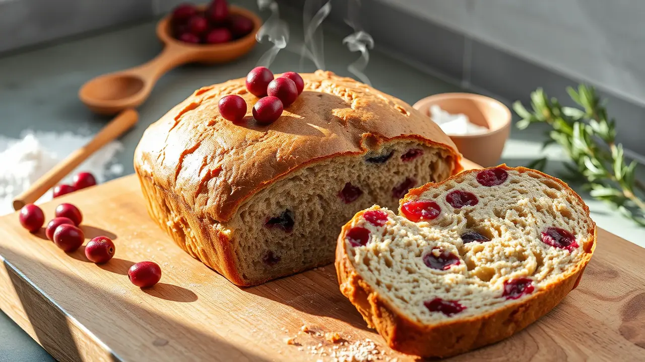 This delightful bread is a perfect blend of sweet and nutty flavors, thanks to the cranberries and whole wheat flour. Whether you're enjoying it fresh with butter or toasting it for breakfast, this bread will leave a lasting impression. It’s not only delicious but also packed with nutrients! Serve it at your next gathering, and watch it disappear.