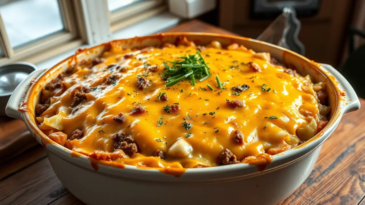 # Old Fashioned Cabbage Casserole🥬🧀 This comforting Old Fashioned Cabbage Casserole is a delightful dish that brings back memories of home-cooked meals. It layers tender cabbage with savory ground beef and a medley of aromatic spices and herbs, all topped off with a gooey layer of cheese. Perfect for family gatherings or a cozy weeknight dinner, this casserole is sure to satisfy even the pickiest eaters. Pair it with a fresh garden salad for a complete meal! 🥗✨ ## Ingredients ### For the casserole - 1 medium head of green cabbage, chopped - 1 pound ground beef (or turkey for a lighter option) - 1 medium onion, diced - 2 cloves garlic, minced - 1 can (15 oz) diced tomatoes, drained - 1 cup uncooked rice (white or brown) - 2 cups beef broth - 1 teaspoon dried thyme - 1 teaspoon dried basil - Salt and pepper to taste - 2 cups shredded cheddar cheese (or your preferred cheese) ## Instructions - Preheat your oven to 350°F (175°C). - In a large skillet over medium heat, brown the ground beef with the diced onion and minced garlic until the meat is cooked through. Drain any excess fat. > 🥄 For added flavor, you can season the beef with Worcestershire sauce while cooking. - In a large mixing bowl, combine the cooked meat mixture, chopped cabbage, drained tomatoes, uncooked rice, beef broth, dried thyme, dried basil, salt, and pepper. Mix everything together until well combined. - Transfer the mixture into a large baking dish and cover tightly with foil. Bake in the preheated oven for about 1 hour, or until the rice and cabbage are tender. - Remove the casserole from the oven and carefully remove the foil. Sprinkle the shredded cheese over the top and return it to the oven uncovered for an additional 15 minutes, or until the cheese is bubbly and golden. - Let the casserole cool for a few minutes before serving. > 🥗 Add some fresh herbs like parsley or chives on top for a pop of color and freshness just before serving! ## Variations - **Vegetarian**: Substitute the ground beef with lentils or your favorite plant-based protein, like tempeh or mushrooms. You can add more veggies to enhance the flavor! - **Spicy**: Add a teaspoon of red pepper flakes or diced jalapeños to the meat mixture for an extra kick. - **Italian**: Mix in Italian sausage instead of regular beef, and use marinara sauce instead of diced tomatoes for an Italian twist! - **Make it creamy**: Stir in a cup of sour cream or cream cheese before baking for a creamy texture that adds richness to the dish. Enjoy this Old Fashioned Cabbage Casserole with family and friends—it's a dish that warms the heart and fills the belly! 🌟❤️name