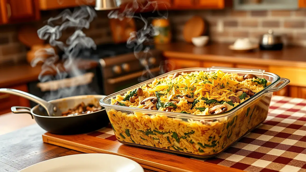 Savory Sauteed Mushroom, Spinach and Rice Casserole 🍄🌱🍚