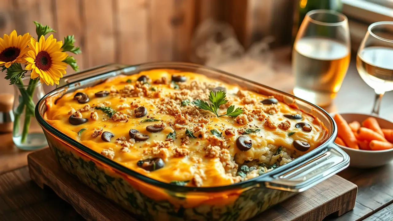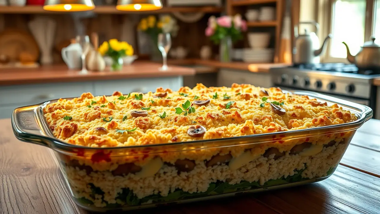 This comforting casserole is a delightful blend of earthy mushrooms, vibrant spinach, and tender rice, baked to perfection. It's a one-pan wonder that makes for a hearty meal and is perfect for using up leftover rice. Whether you're serving it for dinner or as a side dish, this recipe is sure to impress your family and friends with its rich flavors and textures!