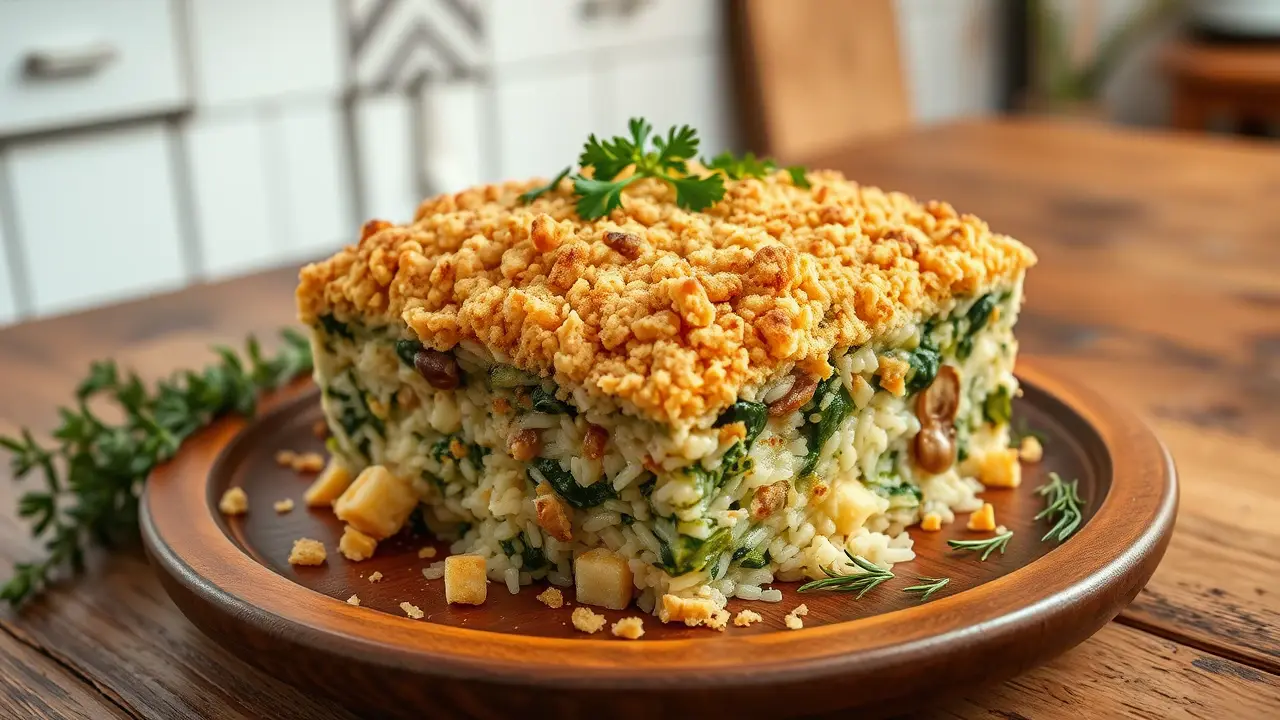 # Savory Sauteed Mushroom, Spinach and Rice Casserole 🍄🌱🍚 This comforting casserole is a delightful blend of earthy mushrooms, vibrant spinach, and tender rice, baked to perfection. It's a one-pan wonder that makes for a hearty meal and is perfect for using up leftover rice. Whether you're serving it for dinner or as a side dish, this recipe is sure to impress your family and friends with its rich flavors and textures! ## Ingredients ### For the casserole - 2 cups cooked white or brown rice - 1 tablespoon olive oil - 1 medium onion, diced - 3 cloves garlic, minced - 8 oz fresh mushrooms, sliced (shiitake, cremini, or button) - 4 cups fresh spinach, roughly chopped - 1 teaspoon dried thyme - 1 teaspoon paprika - Salt and pepper, to taste - 1 cup vegetable or chicken broth - 1 cup shredded cheese (cheddar or mozzarella for a melty topping) ### For the topping - 1/2 cup breadcrumbs (Panko works great for extra crunch!) - 2 tablespoons melted butter - Fresh parsley, chopped (for garnish) ## Instructions 1. Preheat your oven to 375°F (190°C) and grease a 9x13 inch baking dish. 2. In a large skillet, heat the olive oil over medium heat. Add the diced onion and sauté until translucent, about 5 minutes. 3. Stir in the minced garlic and sliced mushrooms. Cook until the mushrooms are tender and have released their moisture, about 7-8 minutes. > 🥄 For an added depth of flavor, consider adding a splash of soy sauce or balsamic vinegar while sautéing the mushrooms! 4. Add the chopped spinach to the skillet and cook until wilted, about 3-4 minutes. Season the mixture with thyme, paprika, salt, and pepper. 5. In a large bowl, combine the cooked rice, sautéed mushroom-spinach mixture, and broth. Mix well until everything is evenly combined. 6. Transfer the mixture to the prepared baking dish and spread it out evenly. 7. Sprinkle the shredded cheese on top of the rice mixture. 8. In a small bowl, mix the breadcrumbs with the melted butter until the crumbs are evenly coated. Sprinkle the breadcrumb mixture over the cheese layer. 9. Bake the casserole in the preheated oven for 25-30 minutes, or until the top is golden and the cheese is bubbly. 10. Remove from the oven and let cool for a few minutes before garnishing with chopped fresh parsley. > 🌿 Feel free to adjust the herbs according to your taste! Fresh herbs like basil or oregano can also enhance the flavors even more. ## Variations - **Vegan**: Substitute the cheese with a vegan cheese alternative or nutritional yeast for a cheesy flavor. Use a plant-based broth as well. - **Add Protein**: Toss in some cooked chicken, shrimp, or chickpeas for a more filling meal! - **Gluten-free**: Use gluten-free breadcrumbs and ensure your vegetable broth is gluten-free. - **Spicy Kick**: Add a pinch of red pepper flakes to the sautéed mushroom mixture for a bit of heat! This Savory Sauteed Mushroom, Spinach, and Rice Casserole is scrumptious and satisfying—perfect for a cozy dinner any night of the week! Enjoy! 🍽️✨name