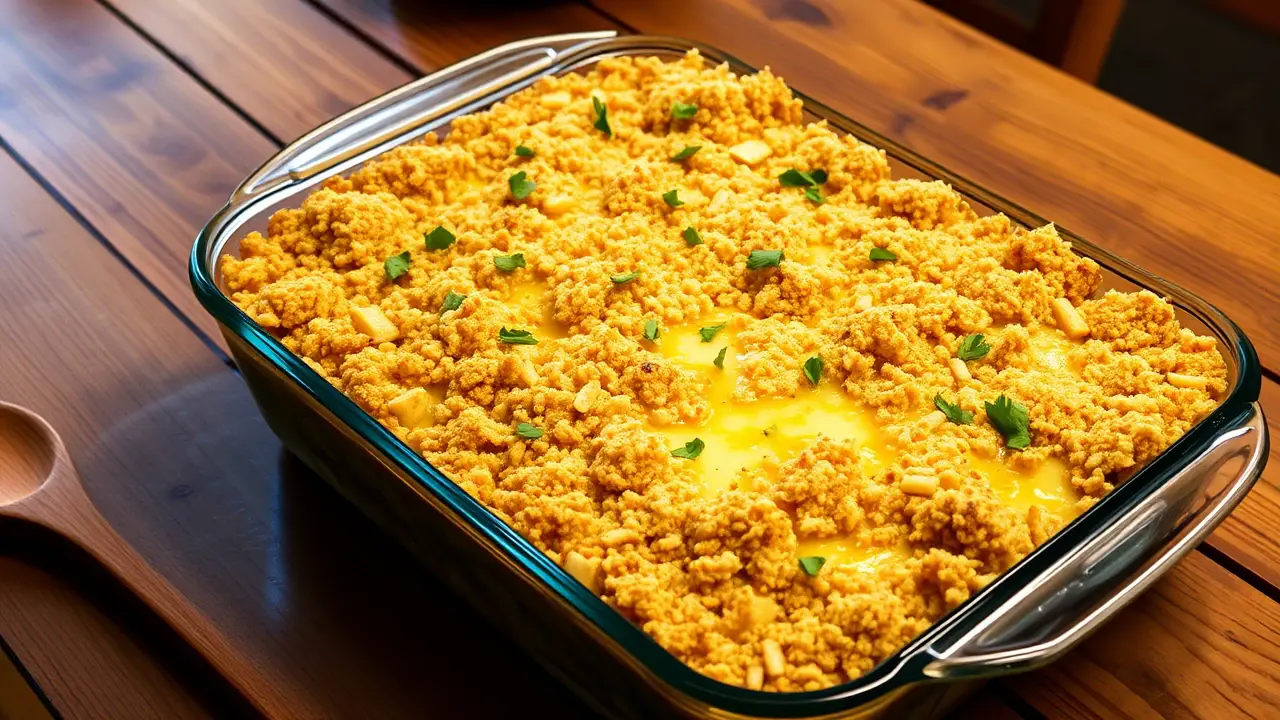 Bake the casserole in the preheated oven for 25-30 minutes, or until the top is golden and the cheese is bubbly.