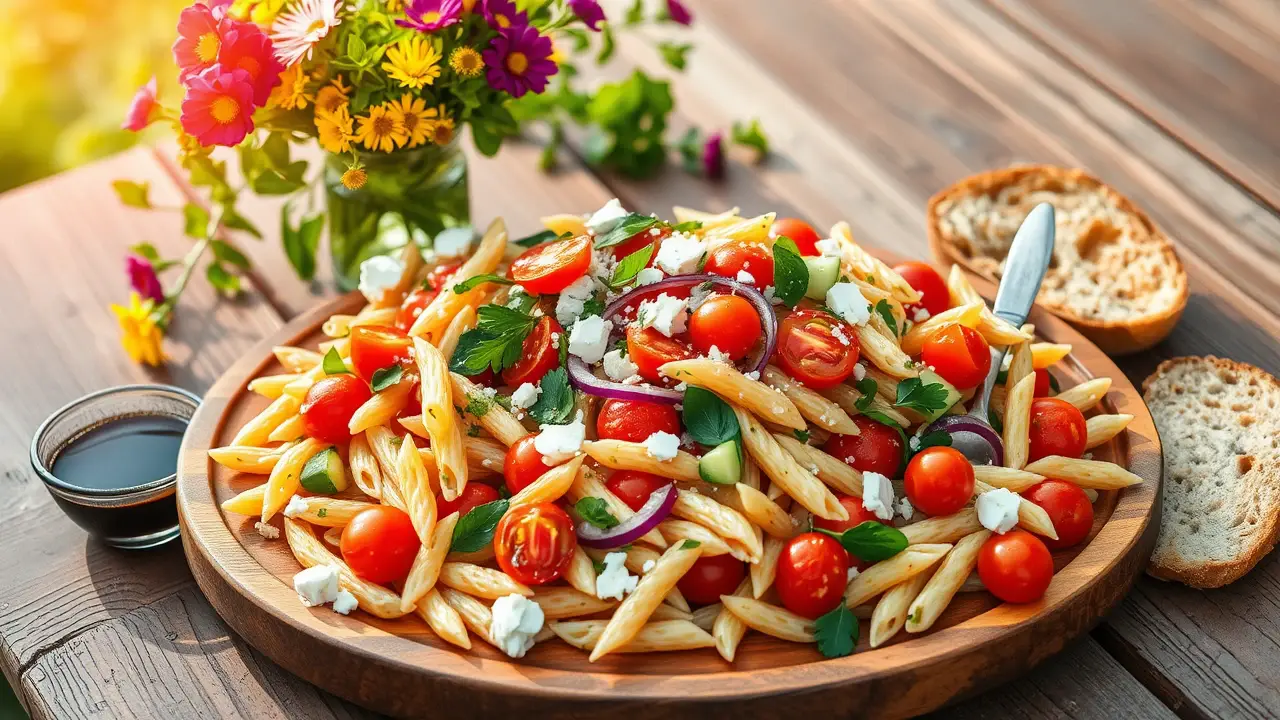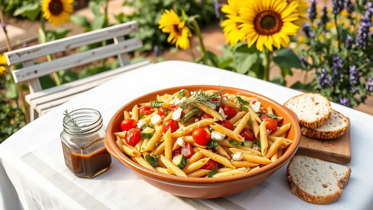 # The Easiest Pasta Salad 🌟🍝 This pasta salad is a delightful mix of fresh ingredients and vibrant flavors, perfect for picnics, potlucks, or a quick weeknight dinner. It's incredibly easy to whip up and comes together in under 30 minutes. Customize it with your favorite veggies, herbs, and dressings for a personalized touch! ## Ingredients ### For the salad - 2 cups of cooked pasta (penne, fusilli, or rotini works best) - 1 cup of cherry tomatoes, halved - 1 cup of cucumber, diced - 1/2 cup of bell peppers, diced (any color you like!) - 1/4 cup of red onion, finely chopped - 1/2 cup of feta cheese, crumbled (optional) - A handful of fresh parsley or basil, chopped ### For the dressing - 1/4 cup of olive oil - 2 tablespoons of balsamic vinegar (or lemon juice) - 1 teaspoon of garlic powder - Salt and pepper, to taste - Optional: 1 teaspoon of Italian seasoning or dried oregano for extra flavor ## Instructions 1. **Cook the pasta**: Bring a pot of salted water to a boil. Cook your pasta according to the package instructions until al dente. Drain and rinse with cold water to stop the cooking process. 2. **Combine the salad ingredients**: In a large bowl, mix together the cooked pasta, cherry tomatoes, cucumber, bell peppers, red onion, and feta cheese. Toss gently to combine. 3. **Make the dressing**: In a small bowl or jar, whisk together the olive oil, balsamic vinegar, garlic powder, salt, and pepper (and optional herbs, if using) until well combined. 4. **Dress the salad**: Pour the dressing over the pasta salad and toss until everything is evenly coated. 5. **Chill and serve**: Let the salad sit for at least 15 minutes to allow the flavors to meld. Serve chilled or at room temperature. Enjoy! > 🥗 This pasta salad can be made ahead of time and stored in the fridge for up to 3 days, making it perfect for meal prep! ## Variations - **Protein-packed**: Add grilled chicken, shrimp, or chickpeas to the salad for a boost of protein and to make it more filling. 💪 - **Vegan**: Omit the feta cheese and substitute the dressing with a splash of plant-based yogurt and lemon juice for a creamy twist! - **Extra crunch**: Toss in some sliced olives, artichoke hearts, or nuts (like pine nuts or walnuts) for added texture. - **Spicy kick**: Add some diced jalapeños or a pinch of red pepper flakes to the dressing for a subtle heat. Feel free to get creative and switch up the ingredients based on what you have on hand or the season. Enjoy your delicious and easy pasta salad! 🍽️❤️name