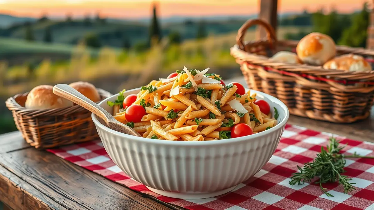 This pasta salad is a delightful mix of fresh ingredients and vibrant flavors, perfect for picnics, potlucks, or a quick weeknight dinner. It's incredibly easy to whip up and comes together in under 30 minutes. Customize it with your favorite veggies, herbs, and dressings for a personalized touch!