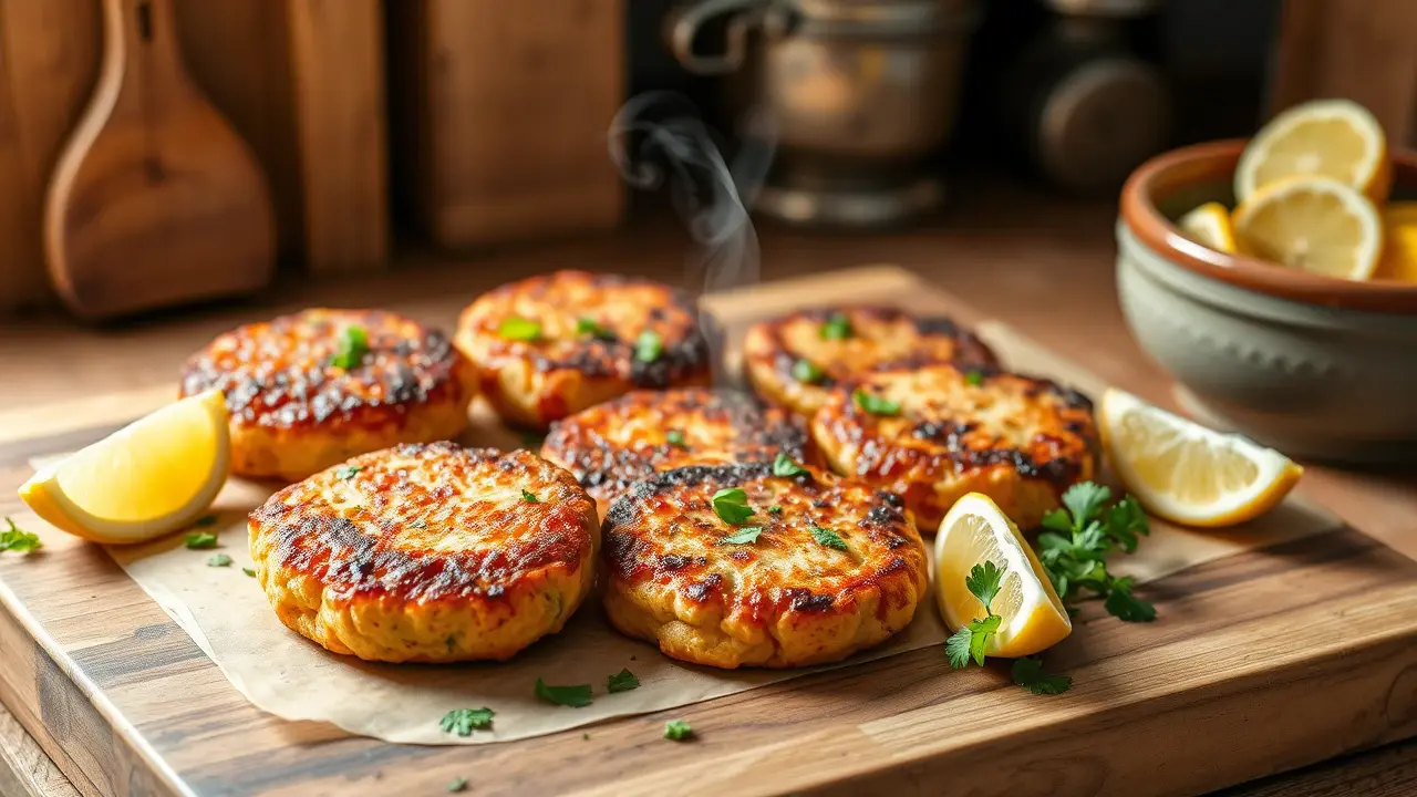 # Southern Baked Salmon Patties 🍽️🐟 These Southern Baked Salmon Patties are a delightful twist on a classic dish. They are crispy on the outside, tender on the inside, and packed with flavor. Perfect as an appetizer, main dish, or sandwich filling! Pair them with a zesty remoulade or a fresh garden salad for a complete meal. 🌿🍋 ## Ingredients ### For the patties - 2 (15-ounce) cans of salmon, drained and flaked - 1 cup of breadcrumbs (preferably seasoned) - 1/4 cup of finely diced onion - 1/4 cup of finely chopped bell pepper (any color) - 2 cloves of garlic, minced - 2 large eggs - 2 tablespoons of mayonnaise - 1 tablespoon of Dijon mustard - 1 teaspoon of Old Bay seasoning - Salt and black pepper, to taste - A dash of hot sauce (optional, for a kick) ### For the topping - Fresh parsley, chopped (for garnish) - Lemon wedges (for serving) ## Instructions - Preheat your oven to 375°F (190°C) and line a baking sheet with parchment paper for easy cleanup. > 🍳 A non-stick spray on the parchment can help the patties crisp up beautifully without sticking! - In a large mixing bowl, combine the flaked salmon, breadcrumbs, diced onion, chopped bell pepper, and minced garlic. - In a separate bowl, whisk together the eggs, mayonnaise, Dijon mustard, Old Bay seasoning, salt, black pepper, and hot sauce (if using). - Pour the wet mixture over the salmon mixture and gently fold everything together until just combined. > 🎣 Be careful not to overmix, as this can make the patties tough. It's okay if there are a few lumps! - Form the mixture into patties, about 3 inches wide and 1 inch thick, and place them on the prepared baking sheet. - Bake in the preheated oven for 20-25 minutes, flipping halfway through, until golden brown and firm to the touch. > 🕒 You can broil the patties for the last 2-3 minutes for an extra crisp finish! - Remove from the oven and let cool slightly. Garnish with fresh parsley and serve with lemon wedges. ## Variations - **Baking Alternative**: If you're short on time, you can pan-fry the patties in olive oil over medium heat until golden brown on both sides. - **Gluten-free**: Use gluten-free breadcrumbs instead of regular ones. You can also use crushed cornflakes for an extra crunch! 🌽 - **Spicy Southwest**: Add a teaspoon of taco seasoning and a chopped jalapeño to the mixture for a zesty, Southwestern flavor profile. - **Herb Lovers**: Incorporate finely chopped dill, cilantro, or green onions for added freshness and flavor. 🌱 - **Canned vs. Fresh**: You can substitute fresh cooked salmon if you prefer; just shred it and use the same quantity. This adds a wonderful homemade touch! Enjoy your delicious Southern Baked Salmon Patties with your favorite dipping sauce or atop a fresh salad for a tasty and healthy meal! 🍽️✨name