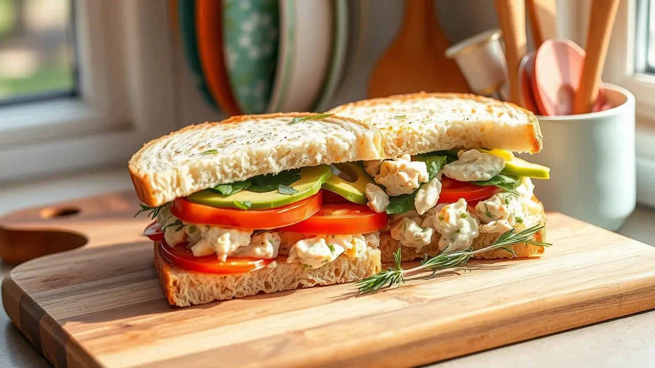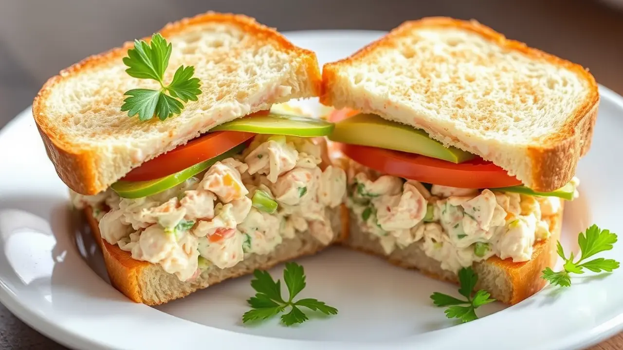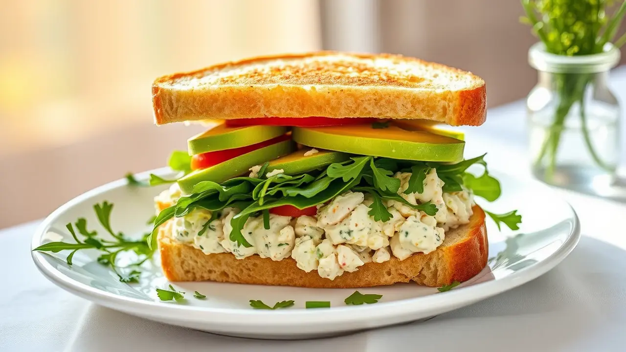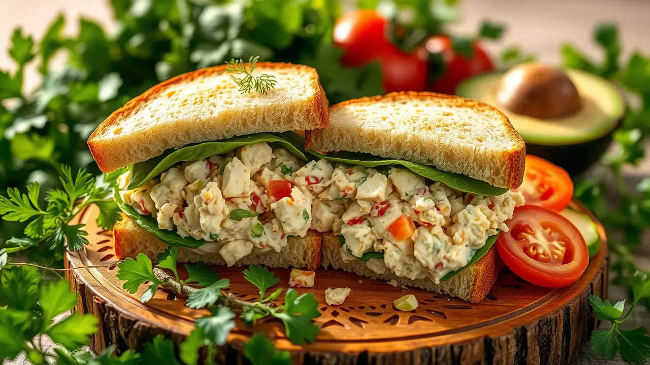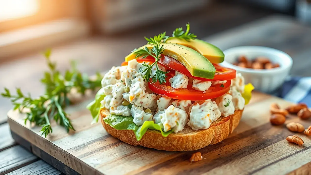 # Classic Chicken Salad Sandwiches 🥪🍗 This delightful recipe for Classic Chicken Salad Sandwiches is perfect for picnics, lunchboxes, or a light dinner. It's creamy, crunchy, and comes together easily with leftover chicken or rotisserie chicken. Customize it with your favorite herbs and spices for an extra kick of flavor. These sandwiches are a hit for gatherings or simply when you're craving something delicious. ## Ingredients ### For the chicken salad - 2 cups cooked chicken, shredded or diced - 1/2 cup mayonnaise - 1/4 cup Greek yogurt (optional, for extra creaminess) - 1 tablespoon Dijon mustard - 1 celery stalk, finely chopped - 1/4 cup red onion, finely chopped - 1/4 cup sweet pickle relish (or diced pickles) - 1 teaspoon garlic powder - Salt and pepper, to taste - 1 tablespoon fresh dill or parsley, chopped (optional) ### For the sandwiches - 4 slices of your favorite bread (white, whole grain, or croissant) - Leafy greens (lettuce, spinach, or arugula) - Sliced tomatoes (optional) - Sliced avocado (optional) ## Instructions - In a large mixing bowl, combine the cooked chicken, mayonnaise, Greek yogurt, and Dijon mustard. Stir until well combined. > 🥄 The Greek yogurt adds a tangy flavor and creaminess, but feel free to adjust the mayonnaise to your taste preference. - Add in the chopped celery, red onion, pickle relish, garlic powder, and herbs (if using). Mix everything together and season with salt and pepper to taste. - To assemble your sandwiches, lay a generous portion of the chicken salad on one slice of bread. Top with leafy greens and any other optional ingredients like sliced tomatoes or avocado. - Place another slice of bread on top and press gently. Cut the sandwich in half if desired. > 🧊 For a cold version, refrigerate the chicken salad for at least 30 minutes before serving; this allows the flavors to meld beautifully. ## Variations - **Nutty crunch**: Add 1/4 cup of chopped walnuts or almonds for an extra crunch and nutty flavor. 🥜 - **Fruity twist**: Incorporate 1/4 cup of diced apples or grapes to the chicken salad for a sweet surprise. - **Spicy kick**: Mix in a dash of hot sauce or sriracha for an exciting spicy kick! - **Low-carb**: Serve the chicken salad on lettuce wraps instead of bread for a lighter option. With these easy steps, you’ll have a tasty and satisfying meal ready in no time! Enjoy your Classic Chicken Salad Sandwiches and share them with family and friends! 🍽️✨name