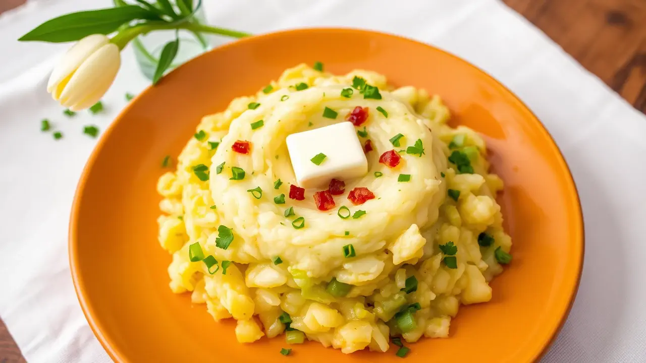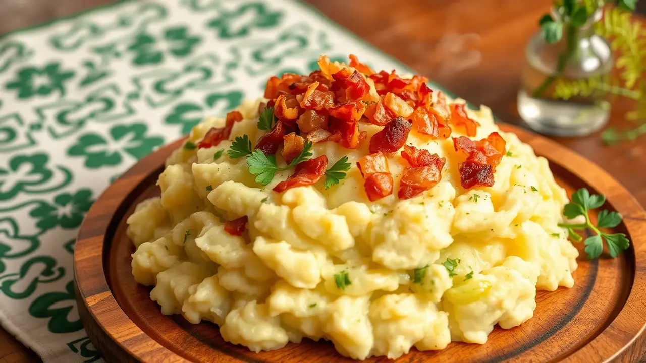 # Saint Patrick's Day Cabbage and Leek Colcannon đ„Źđ Celebrate St. Patrick's Day with this traditional Irish dish that combines creamy mashed potatoes with tender cabbage and fragrant leeks. This festive colcannon is not only a comfort food classic, but it also brings the vibrant colors of the holiday to your dinner table! Pair it with corned beef or enjoy it on its own; either way, itâs a hearty dish thatâs sure to please everyone. ## Ingredients ### For the colcannon - 2 pounds of potatoes (Yukon Gold or Russet, peeled and quartered) - 1 cup of milk (or plant-based milk for a vegan version) - 1/4 cup of butter (or dairy-free butter) - 1 medium head of green cabbage, chopped - 2 leeks, cleaned and sliced (white and light green parts only) - 1/4 cup of chopped fresh parsley - Salt and pepper to taste ### For serving - Crumbled crispy bacon (optional) - Additional butter (for drizzling) ## Instructions 1. **Boil the potatoes**: Place the quartered potatoes in a large pot and cover with water. Bring to a boil and cook for about 15-20 minutes, or until fork-tender. 2. **Prepare the cabbage and leeks**: While the potatoes are boiling, heat a large skillet over medium heat. Add the butter, then sautĂ© the leeks for about 3-4 minutes until they start to soften. 3. **Add the cabbage**: Stir in the chopped cabbage and cook for an additional 5-7 minutes, until the cabbage becomes tender and slightly wilted. Season with salt and pepper. > đ„ Donât worry about the cabbage shrinkingâyou want it to reduce down to blend well with the potatoes! The combination of flavors is magical. 4. **Mash the potatoes**: Once the potatoes are cooked, drain them and return them to the pot. Add the milk and mash until smooth and creamy. Season with a pinch of salt and pepper. 5. **Incorporate the vegetables**: Fold the sautĂ©ed cabbage and leeks into the mashed potatoes. Add the fresh parsley and mix until everything is well combined. 6. **Serve**: Spoon the colcannon onto plates and create a small well in the center of each serving. Add a pat of butter for extra richness, and top with crispy crumbled bacon if desired. > đœïž For an authentic touch, you can also add a dollop of sour cream or a sprinkle of chives on top before serving. This will elevate the dish to another level! ## Variations - **Vegan version**: Substitute the butter for olive oil or vegan butter, and use plant-based milk. You can also skip the bacon or use crispy chickpeas for a crunchy topping. - **Add-ins**: Consider mixing in other vegetables like chopped scallions or sautĂ©ed kale for a colorful twist! - **Herbs**: Experiment with different herbs like thyme or dill to customize the flavor profile to your liking. - **High altitude**: At higher elevations, you might need to increase the boiling time for the potatoes slightly, as they take longer to cook through. Enjoy this hearty, delicious, and festive Saint Patrick's Day Cabbage and Leek Colcannonâit's sure to become a beloved favorite in your household! âïžđname