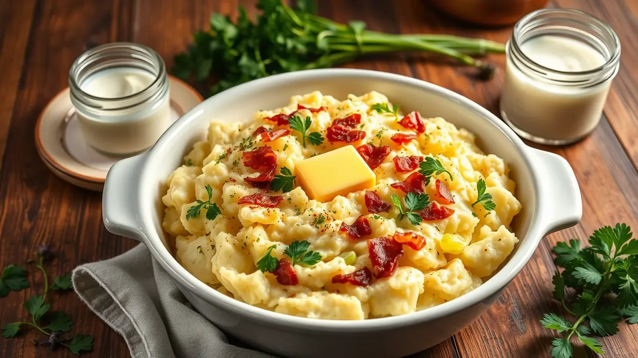 - Vegan version: Substitute the butter for olive oil or vegan butter, and use plant-based milk. You can also skip the bacon or use crispy chickpeas for a crunchy topping.