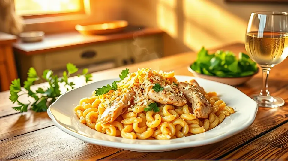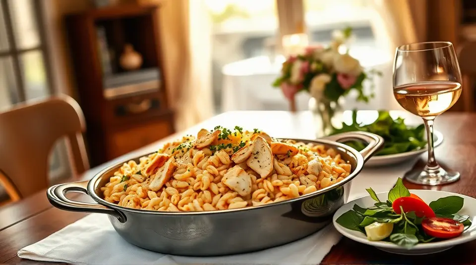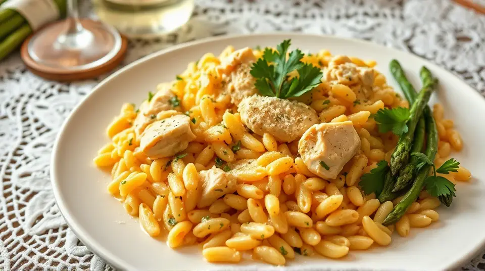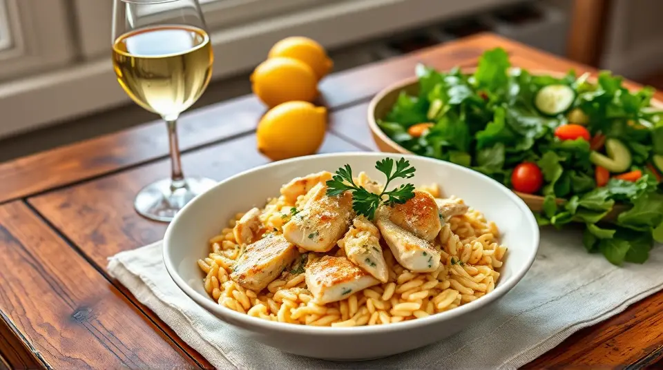 # Creamy Lemon Chicken Orzo 🍋🍗 This delightful creamy lemon chicken orzo recipe is a perfect blend of zesty flavors and comforting textures. It's an excellent dish for a cozy family dinner or an impressive meal for guests. The bright lemony sauce paired with tender chicken and orzo makes it irresistibly flavorful. You can serve it as a main course with a fresh side salad for a balanced meal! ## Ingredients ### For the chicken and orzo - 1 lb boneless, skinless chicken breasts, cut into bite-sized pieces - 1 cup orzo pasta - 2 tablespoons olive oil - 1 teaspoon garlic powder - 1 teaspoon onion powder - Salt and pepper to taste - 2 cups low-sodium chicken broth - 1 cup heavy cream ### For the lemon sauce - Zest of 1 lemon - 1/4 cup freshly squeezed lemon juice (about 1-2 lemons) - 1 teaspoon Dijon mustard - 1 teaspoon dried thyme (or 1 tablespoon fresh thyme) - 1/4 cup grated Parmesan cheese - Fresh parsley, chopped, for garnish ## Instructions - Heat the olive oil in a large skillet over medium heat. Season the chicken with garlic powder, onion powder, salt, and pepper. Add the chicken to the skillet and cook until golden and cooked through, about 5-7 minutes. Remove the chicken from the skillet and set aside. > 🍽️ Make sure not to overcrowd the skillet when cooking the chicken. This helps achieve that lovely golden color! - In the same skillet, add the orzo and toast it lightly for 1-2 minutes, stirring constantly. Then add the chicken broth and bring to a boil. Reduce the heat to low, cover, and simmer for about 10-12 minutes, or until the orzo is cooked and has absorbed most of the liquid. - While the orzo cooks, prepare the creamy lemon sauce. In a small bowl, whisk together the lemon zest, lemon juice, Dijon mustard, thyme, heavy cream, and Parmesan cheese until fully combined. - Once the orzo is done, return the cooked chicken to the skillet. Pour the creamy lemon sauce over the chicken and orzo, stirring until everything is well-coated and heated through. > 🍋 Feel free to adjust the amount of lemon juice to suit your taste. If you love citrus, add an extra splash! - Serve immediately, garnished with chopped parsley for a fresh touch. ## Variations - **Add Vegetables**: Stir in some spinach, asparagus, or peas for extra nutrients and texture. Just add them to the skillet during the last few minutes of cooking orzo. - **Protein Swap**: This dish works well with shrimp or diced tofu instead of chicken for a seafood or vegetarian option. Adjust cooking times accordingly. - **Spicy Kick**: Add a pinch of red pepper flakes to the sauce for a bit of heat. - **Herb Infusion**: Experiment with fresh herbs like basil or dill instead of thyme for a different flavor profile. > 🥗 Pair with a simple green salad and a glass of white wine for a perfect evening meal! Enjoy your cooking! 🍽️✨name