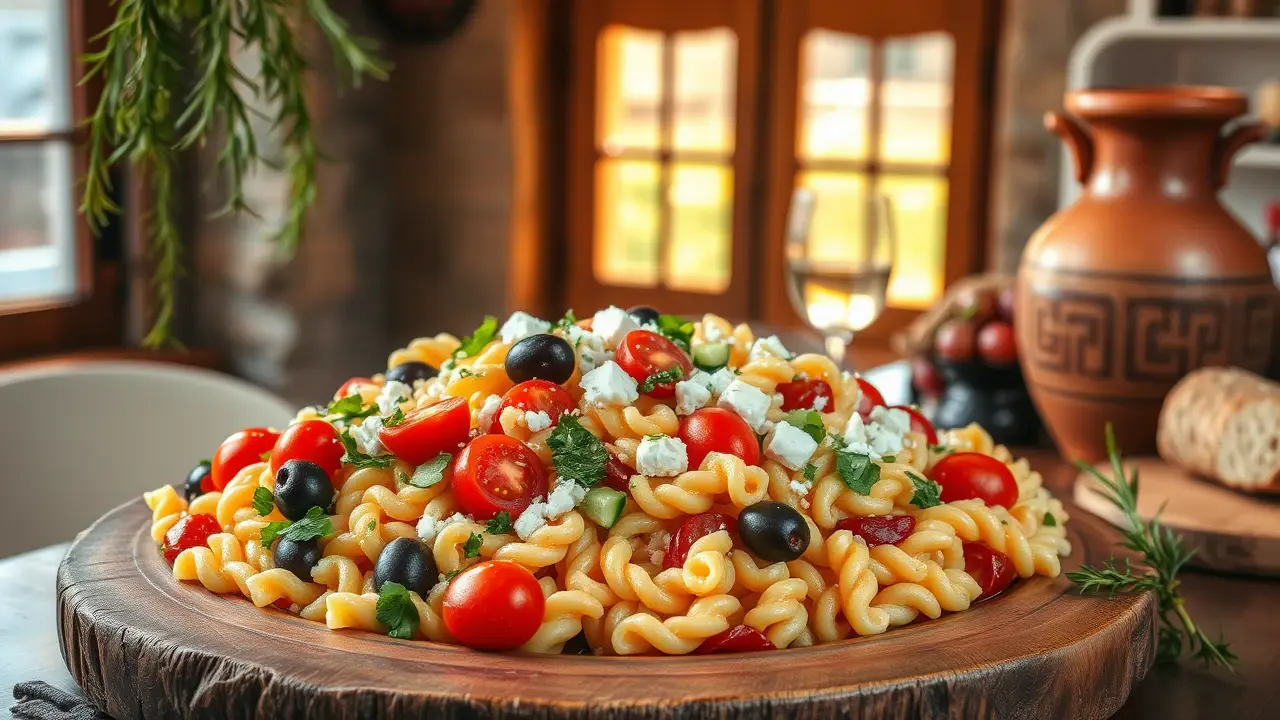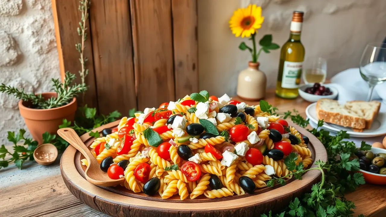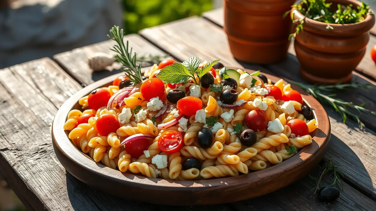 This vibrant and refreshing pasta salad is perfect for picnics, barbecues, or a light lunch. The combination of tangy feta cheese, juicy cherry tomatoes, and zesty lemon dressing makes this dish a delightful Mediterranean treat! 🍋✨