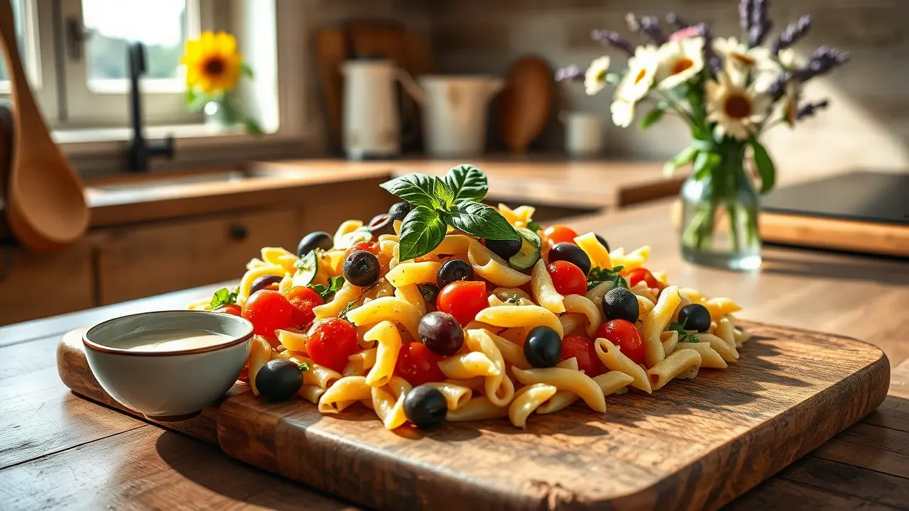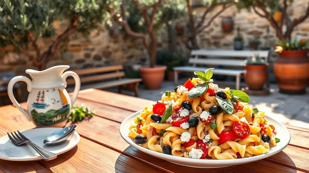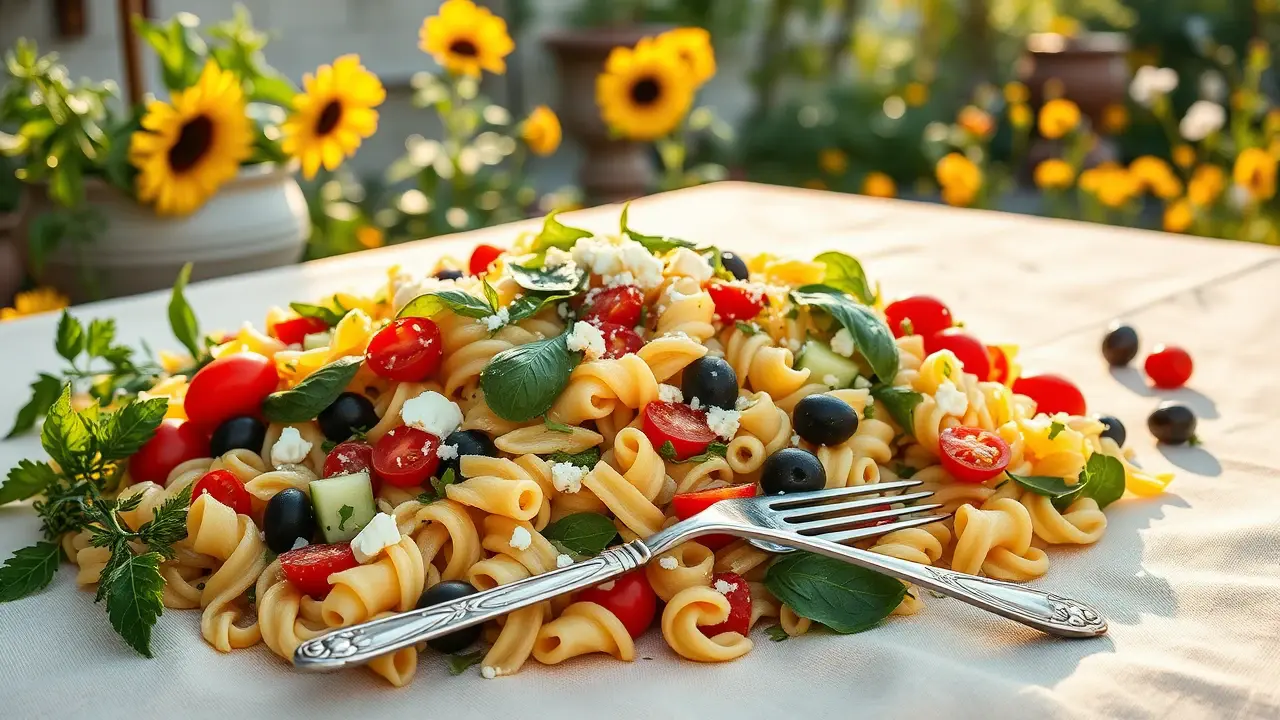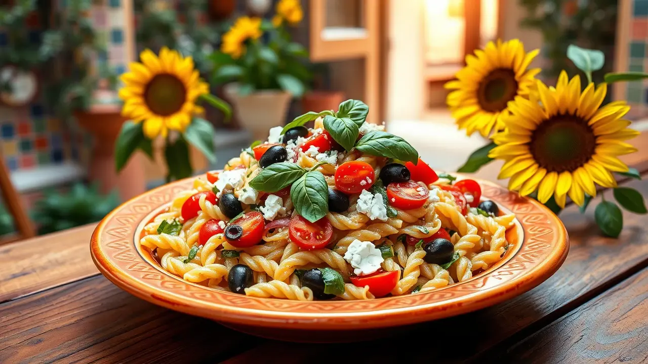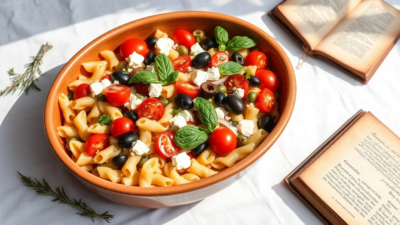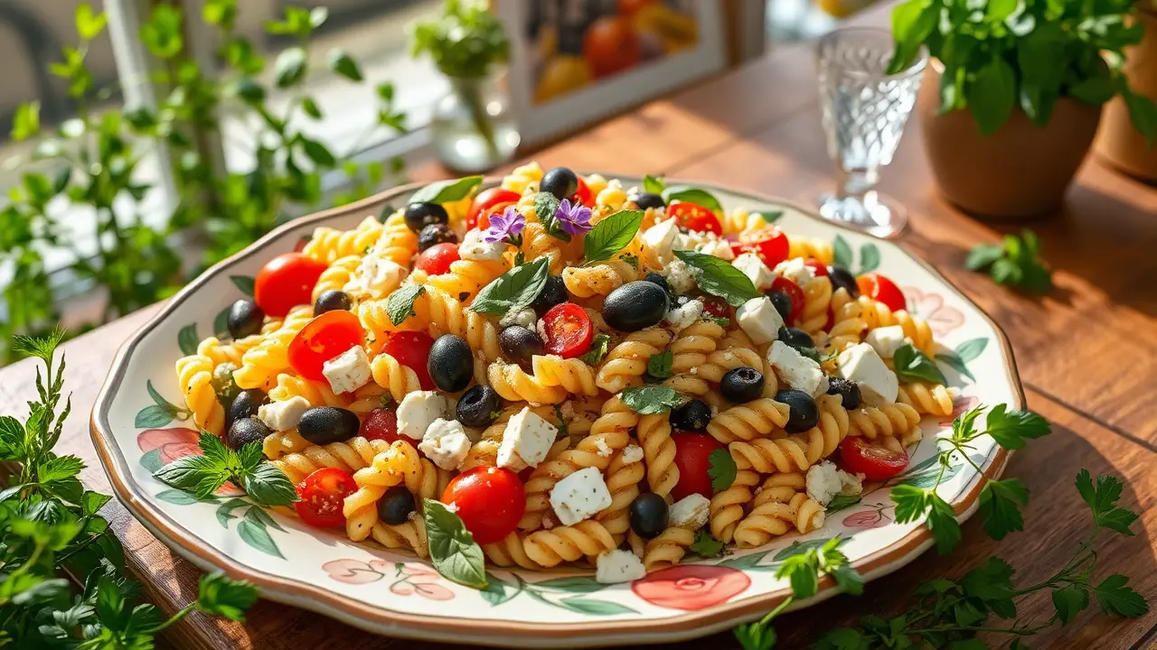 Mediterranean Pasta Salad with Green Olives and Basil 🌿🍝
