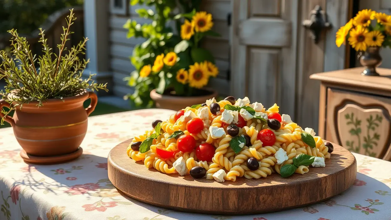 # Mediterranean Pasta Salad with Green Olives and Basil 🌿🍝 This vibrant Mediterranean pasta salad is a delightful and refreshing dish perfect for picnics, potlucks, or a light lunch at home. The combination of tangy green olives, aromatic basil, and crunchy vegetables brings a burst of flavor that dances on your palate. It's also incredibly easy to customize, so feel free to add your favorite ingredients for a personal touch. ## Ingredients ### For the salad - 8 oz fusilli or rotini pasta - 1 cup cherry tomatoes, halved - 1 cup cucumber, diced - 1/2 cup Kalamata olives, pitted and sliced - 1/2 cup green olives, pitted and sliced - 1/4 cup red onion, finely chopped - 1/2 cup feta cheese, crumbled - 1/4 cup fresh basil leaves, roughly chopped - Salt and pepper, to taste ### For the dressing - 1/4 cup extra-virgin olive oil - 2 tablespoons red wine vinegar - 1 teaspoon Dijon mustard - 1 clove garlic, minced - 1/2 teaspoon dried oregano - Zest and juice of 1 lemon - Salt and pepper, to taste ## Instructions 1. **Cook the pasta**: In a large pot of salted boiling water, cook the pasta according to package instructions until al dente. Drain and rinse under cold water to cool it down. Set aside. > 🍳 Rinsing the pasta helps stop the cooking process, keeping it firm and preventing it from becoming mushy in the salad. 2. **Prepare the vegetables**: In a large mixing bowl, combine the cherry tomatoes, cucumber, Kalamata olives, green olives, red onion, and feta cheese. 3. **Make the dressing**: In a small bowl or jar, whisk together olive oil, red wine vinegar, Dijon mustard, minced garlic, oregano, lemon zest, and lemon juice. Season with salt and pepper to taste. > 🍋 Lemon juice adds a zesty brightness that ties all the flavors together. Adjust the acidity based on your preference! 4. **Combine everything**: Add the cooled pasta and chopped basil to the vegetable mixture. Pour the dressing over the salad and toss gently until everything is well-coated. > 🥗 Tossing gently ensures that the pasta doesn’t break apart and the ingredients remain intact. 5. **Chill and serve**: Let the salad sit for at least 30 minutes in the refrigerator before serving. This allows the flavors to meld beautifully. > ❄️ You can make this salad a day in advance—just keep it covered in the refrigerator for an extra tasty meal the next day! ## Variations - **Add protein**: Toss in some grilled chicken, shrimp, or chickpeas for a heartier meal. 💪 - **Gluten-free**: Substitute regular pasta with gluten-free pasta to accommodate dietary needs. - **Vegan**: Omit the feta cheese and replace it with avocado for creaminess. - **Spicy kick**: Add sliced jalapeños or a sprinkle of red pepper flakes for a bit of heat! 🌶️ - **Substitute herbs**: Use fresh parsley or mint instead of basil for a different flavor profile. Enjoy your Mediterranean Pasta Salad with Green Olives and Basil as a colorful side dish or a delightful main course! 🍽️✨name