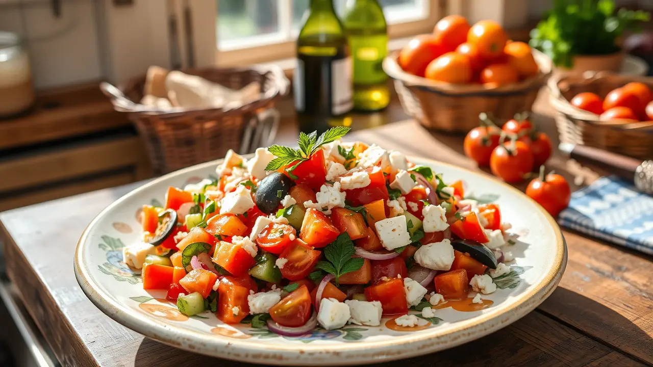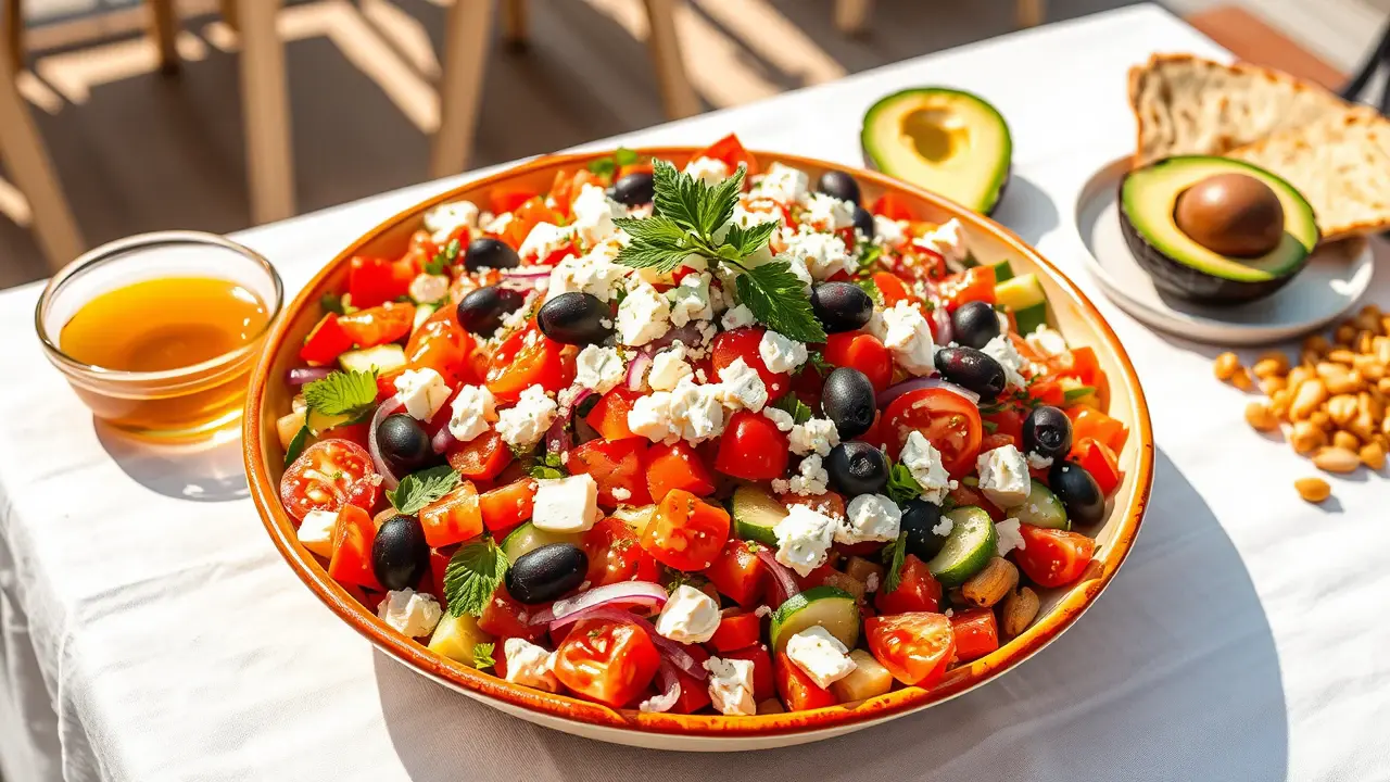 This vibrant and flavorful Greek Salad is a colorful celebration of classic Mediterranean ingredients. Packed with fresh vegetables, tangy feta cheese, and a zesty dressing, itβs perfect for a summer picnic or as a delightful side for any meal. Add a few delicious trimmings to enhance the experience and impress your family and friends!