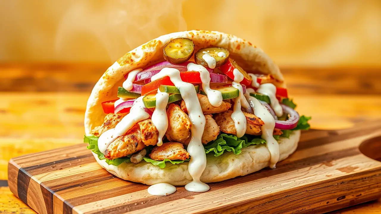 - Layer the sliced chicken on the bread, followed by your choice of toppings, and drizzle generously with the creamy garlic sauce.