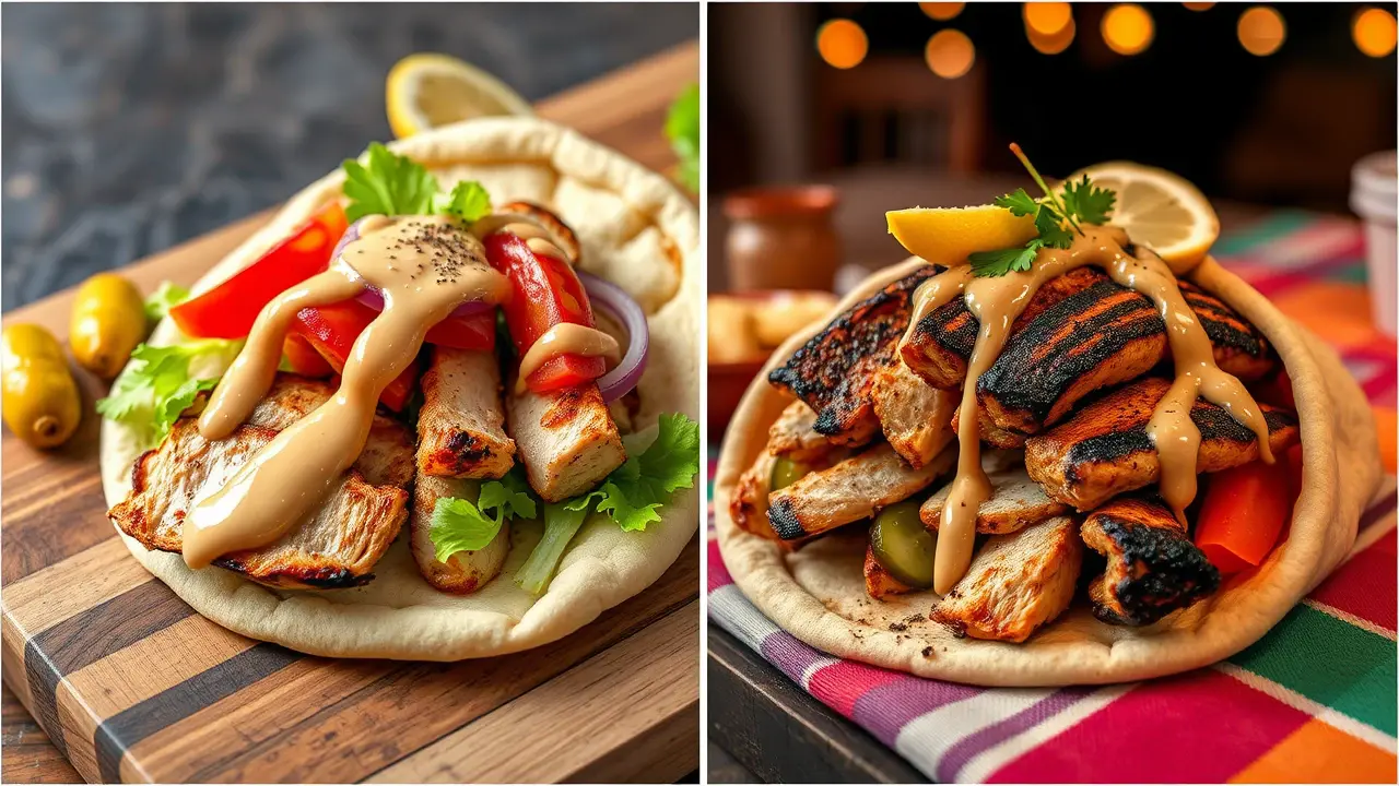 # Homemade Chicken Shawarma with Creamy Garlic Sauce 🌯🍗 This homemade chicken shawarma recipe brings the flavors of the Middle East right to your kitchen! It’s juicy, spiced to perfection, and served with a succulent garlic sauce that takes it over the top. Perfect for a family meal or a treat for friends! ## Ingredients ### For the Chicken Marinade - 1.5 lbs boneless, skinless chicken thighs - 1/4 cup olive oil - 3 cloves garlic, minced - 2 tsp ground cumin - 2 tsp ground turmeric - 2 tsp ground coriander - 1 tsp ground paprika - 1 tsp ground cinnamon - 1/2 tsp cayenne pepper (optional, for heat) - Juice of 1 lemon - Salt and pepper, to taste ### For the Creamy Garlic Sauce - 1/2 cup plain yogurt (Greek or regular) - 1/4 cup mayonnaise - 3 cloves garlic, minced - 1 tbsp lemon juice - Salt and pepper, to taste ### To Assemble - Pita bread or flatbread - Fresh toppings: sliced cucumber, tomato, red onion, and lettuce - Pickles (optional) ## Instructions ### Marinate the Chicken - In a large bowl, whisk together olive oil, minced garlic, cumin, turmeric, coriander, paprika, cinnamon, cayenne pepper, lemon juice, salt, and pepper to create the marinade. - Add the chicken thighs to the bowl, making sure they are thoroughly coated in the marinade. Cover and refrigerate for at least 1 hour, or ideally overnight for maximum flavor. ### Prepare the Sauce - In a small bowl, combine yogurt, mayonnaise, minced garlic, lemon juice, salt, and pepper. Whisk until smooth. Adjust seasoning to taste and refrigerate until ready to use. ### Cook the Chicken - Preheat your grill or skillet over medium-high heat. - Remove the chicken from the marinade and cook for about 5-7 minutes per side, until the chicken is cooked through and reaches an internal temperature of 165°F (75°C). Alternatively, you can bake the chicken in a 400°F (200°C) oven for about 20-25 minutes. - After cooking, let the chicken rest for a few minutes before slicing it into strips. > 🔥 A grill pan or outdoor grill will give you those beautiful char marks and smoky flavor that is characteristic of shawarma! ### Assemble the Shawarma - Warm the pita or flatbread lightly on the grill or in a skillet. - Layer the sliced chicken on the bread, followed by your choice of toppings, and drizzle generously with the creamy garlic sauce. > 🥗 Feel free to get creative with toppings! Add any favorite vegetables or even some spicy jalapeños for an extra kick. ## Variations - **Vegetarian**: Replace chicken with marinated and grilled veggies like eggplant, zucchini, and bell peppers for a delicious plant-based option! 😋 - **Spicy**: Add some harissa or chili paste to the marinade for a bolder flavor. - **Low-carb**: Serve the chicken in lettuce wraps instead of pita for a healthier alternative. - **Meal prep**: Pre-marinade the chicken on the weekend and grill it up fresh throughout the week for quick lunches or dinners. Enjoy your homemade chicken shawarma, bursting with flavor and ready to impress! 🌟name