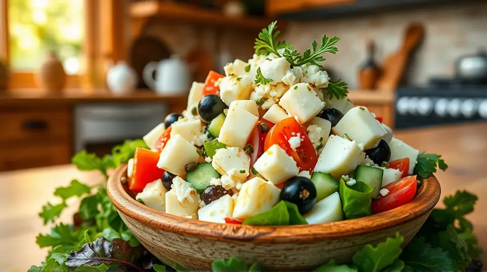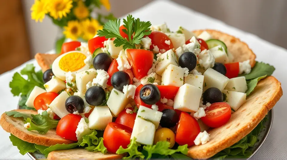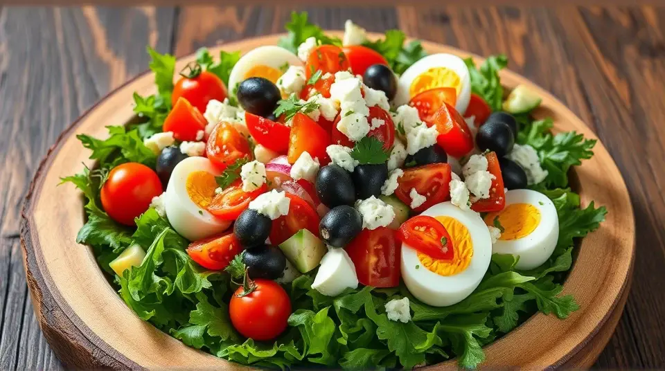 # Mediterranean Egg Salad π₯π This Mediterranean Egg Salad is a refreshing twist on the classic version, packed with vibrant flavors and nutritious ingredients. Perfect as a light lunch or as a party appetizer, this salad combines creamy elements with zesty Mediterranean flair. Serve it on a bed of greens or as a spread on pita bread for a delightful treat! πΏπ₯ ## Ingredients ### For the salad - 6 large eggs, hard-boiled and chopped - 1/2 cup Greek yogurt - 1/4 cup mayonnaise - 1/2 cup cherry tomatoes, halved - 1/4 cup Kalamata olives, pitted and chopped - 1/4 cup cucumber, diced - 1/4 cup red onion, finely chopped - 1/4 cup fresh parsley, chopped - 1 tablespoon capers, rinsed and chopped - 1 teaspoon Dijon mustard - Juice of 1 lemon - Salt and pepper to taste ### For garnish - Additional chopped parsley - Crumbled feta cheese (optional) ## Instructions - In a large bowl, combine the Greek yogurt, mayonnaise, Dijon mustard, and lemon juice. Mix until smooth. > π Fresh lemon juice adds a brightness that will elevate the dish. Adjust to your taste for a zippier flavor! - Add the chopped hard-boiled eggs, cherry tomatoes, olives, cucumber, red onion, parsley, and capers to the bowl. Gently fold the ingredients together until everything is well mixed. - Season with salt and pepper to taste. > π₯ Be careful not to mash the eggs too much; you want some texture in the salad. - Chill in the refrigerator for at least 30 minutes to allow the flavors to meld. > βοΈ For an extra fresh touch, add some diced bell peppers or artichoke hearts for crunch! ## Variations - **Dairy-free**: Swap Greek yogurt and mayonnaise for a vegan mayo or avocado to keep it creamy without dairy. π - **Spicy**: Add a pinch of red pepper flakes or a dash of hot sauce for some heat! - **Herbaceous**: Toss in some fresh dill or mint for a different aroma and flavor profile. - **Protein boost**: Add canned tuna or chickpeas for extra protein and texture. ## Serving Suggestions Serve this Mediterranean Egg Salad with whole-grain pita, over a bed of mixed greens, or as a filling for sandwiches. It's also an excellent topping for crisp cucumbers or whole-grain crackers! Enjoy the delightful taste of the Mediterranean at your table. π₯πname