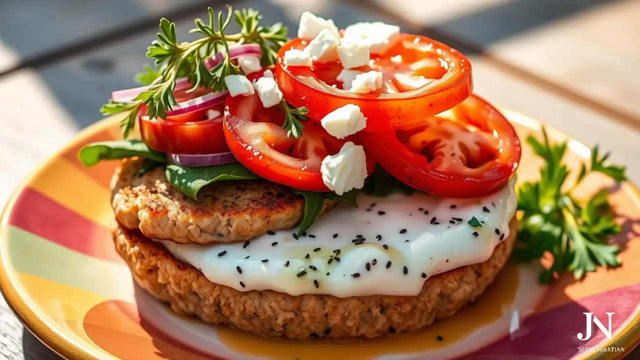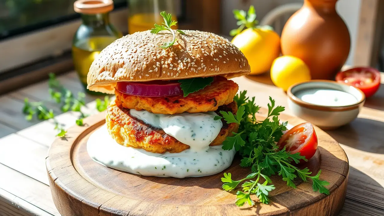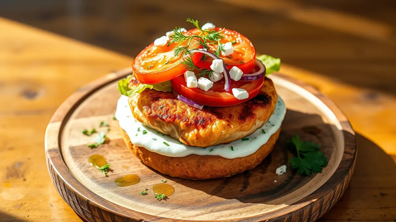 # The Most Mediterranean Salmon Burger You'll Ever Have ๐ฃ๐ฟ This delicious salmon burger is bursting with Mediterranean flavors! It's perfect for a sunny day in the garden or a quick weeknight dinner. The combination of fresh herbs, zesty lemon, and creamy tzatziki sauce elevates this burger to the next level. It's not only tasty but also healthy and easy to prepare! ## Ingredients ### For the salmon patties - 1 pound fresh salmon, skin removed and finely chopped - 1/4 cup breadcrumbs (preferably whole wheat) - 2 tablespoons fresh parsley, finely chopped - 2 tablespoons fresh dill, finely chopped - 1 clove garlic, minced - Zest of 1 lemon - Juice of 1/2 lemon - 1 egg, beaten - Salt and pepper, to taste - Olive oil, for cooking ### For the tzatziki sauce - 1 cup Greek yogurt - 1/2 cucumber, grated and excess moisture squeezed out - 1 clove garlic, minced - 1 tablespoon fresh dill, chopped - Juice of 1/2 lemon - Salt and pepper, to taste ### For serving - Whole grain burger buns - Sliced tomatoes - Leafy greens (arugula or spinach works well) - Red onion, thinly sliced - Optional: Feta cheese, crumbled ## Instructions ### For the salmon patties - In a large bowl, combine the chopped salmon, breadcrumbs, parsley, dill, garlic, lemon zest, lemon juice, and the beaten egg. Mix until well combined, then season with salt and pepper. > ๐ฅ Be gentle when mixing; you want to keep some texture in the salmon without overworking it! - Divide the mixture into 4 equal portions and form them into patties. - Heat a skillet over medium heat and add a drizzle of olive oil. Cook the salmon patties for about 4-5 minutes on each side, or until golden brown and cooked through. ### For the tzatziki sauce - In a medium bowl, combine the Greek yogurt, grated cucumber, garlic, dill, lemon juice, salt, and pepper. Stir until well mixed, adjusting seasoning to taste. > ๐ง If you want a thicker tzatziki, let it drain for 10-15 minutes before serving. ### Assembly - Toast the whole grain burger buns on the skillet or grill for extra flavor. - Spread a generous amount of tzatziki on the bottom half of the bun. Top with a salmon patty, slices of tomato, leafy greens, and red onion. If desired, sprinkle with crumbled feta. - Place the top bun and serve immediately. > ๐ฝ๏ธ This burger is best enjoyed fresh, but you can also prepare the tzatziki sauce ahead of time and store it in the fridge for up to 3 days. ## Variations - **Spicy Kick**: Add a pinch of red pepper flakes to the salmon mixture for a bit of heat. ๐ถ๏ธ - **Grain-Free**: Use almond flour instead of breadcrumbs for a low-carb option thatโs still delicious! - **Vegan**: Substitute the salmon with mashed chickpeas and use a flaxseed meal egg. Adjust cooking time accordingly. - **Pesto Twist**: Mix in a spoonful of basil pesto into the salmon mixture for an extra burst of flavor. Enjoy this Mediterranean delight that will transport your taste buds straight to the sun-soaked shores of the Mediterranean! โ๏ธ๐name