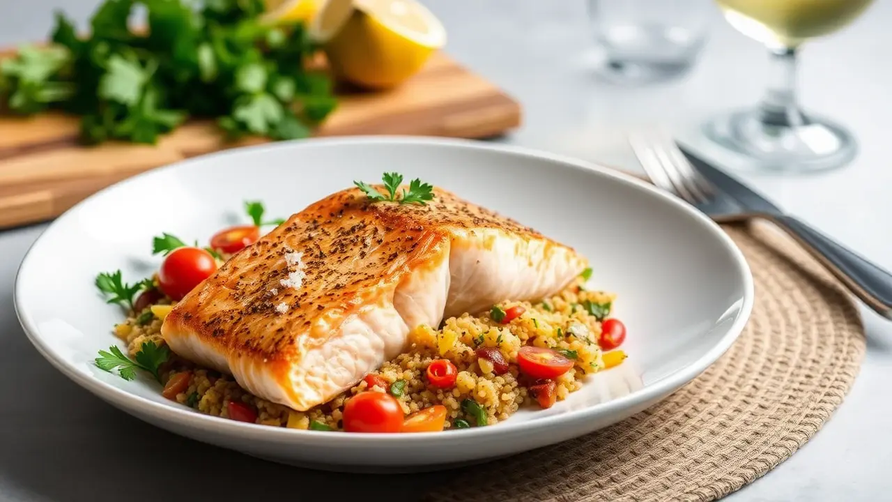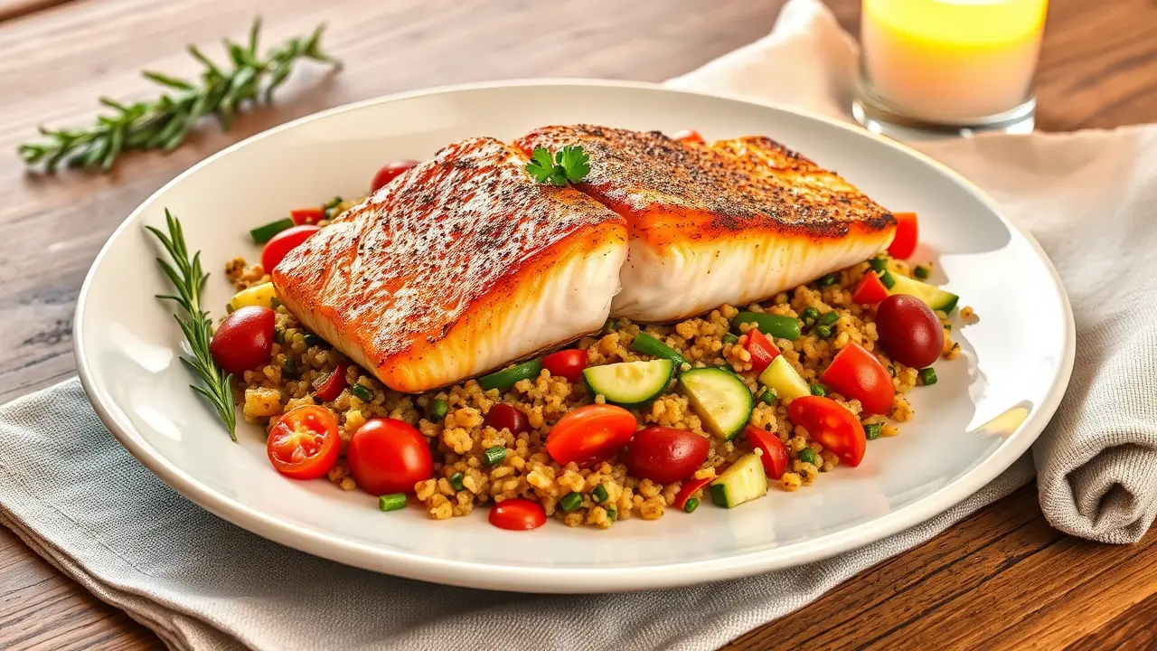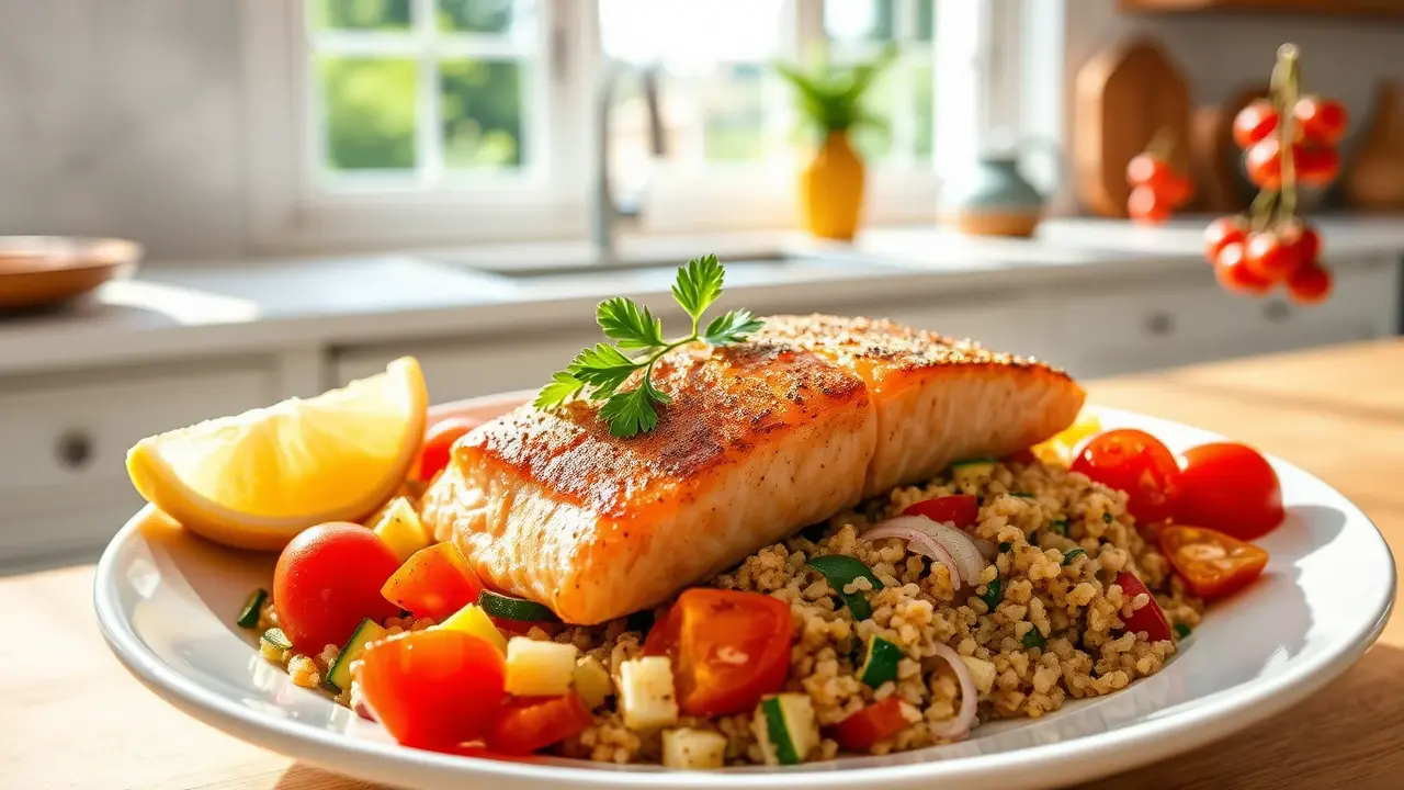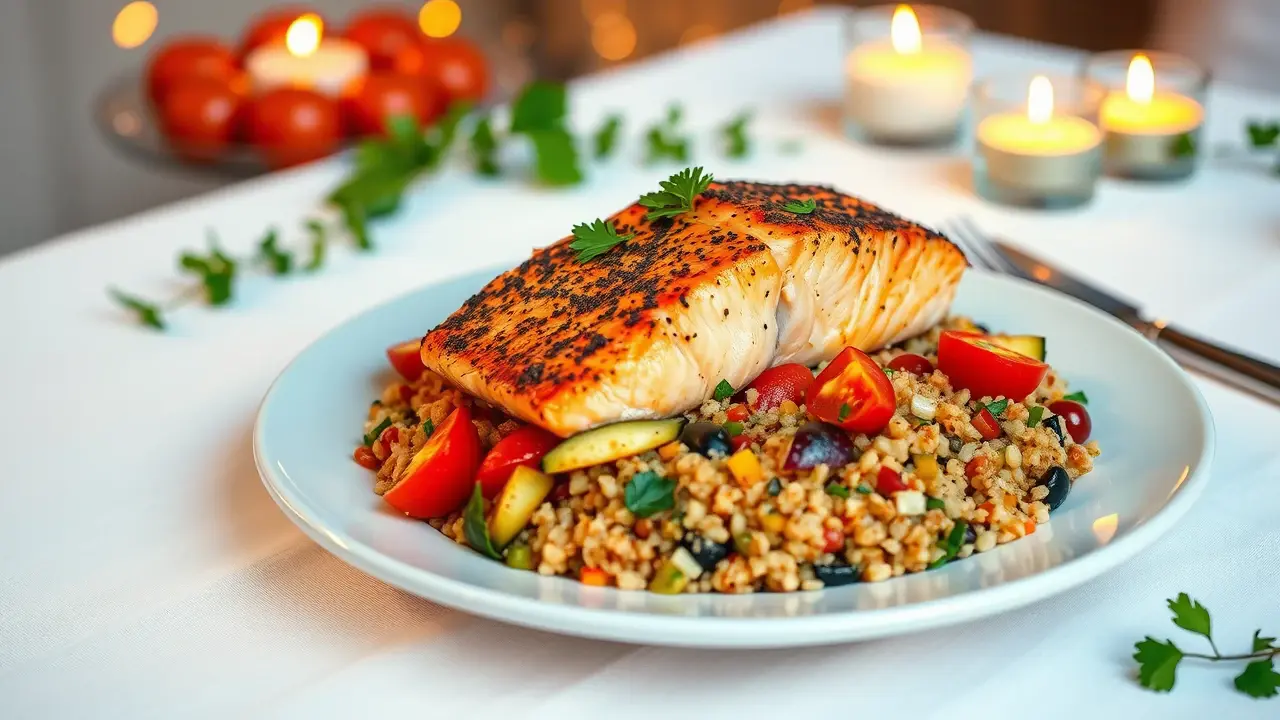Mediterranean Spiced Salmon with Vegetable Quinoa 🍣🍅