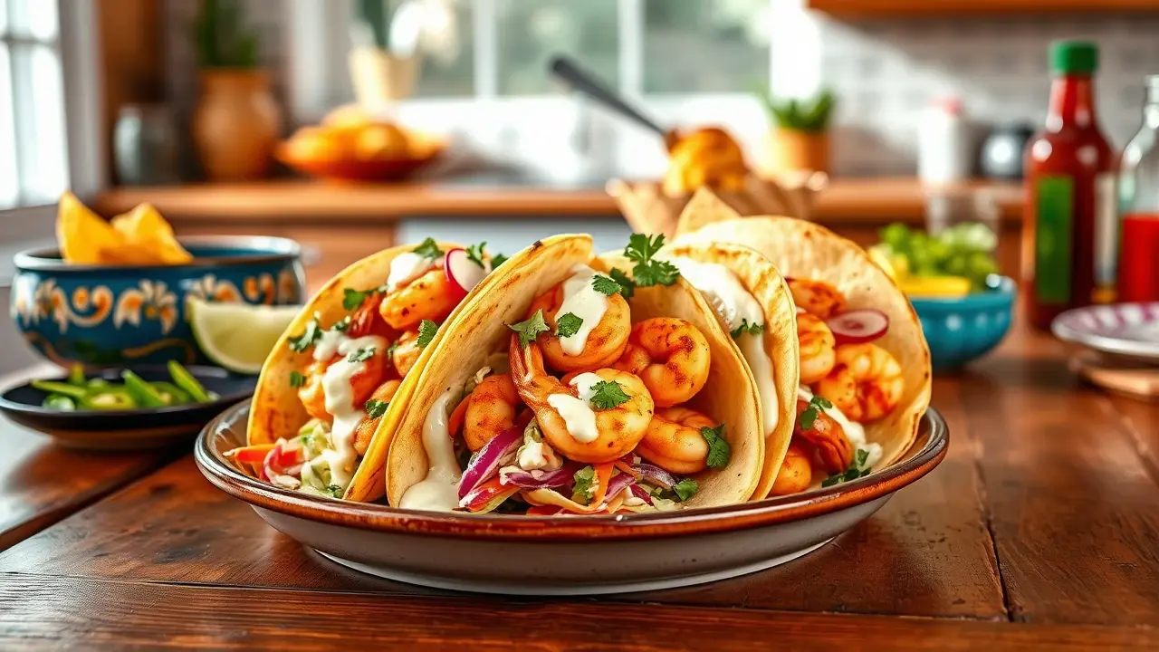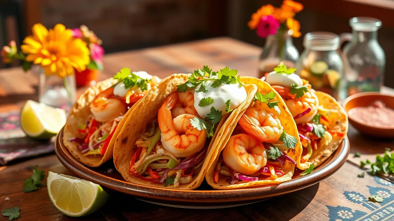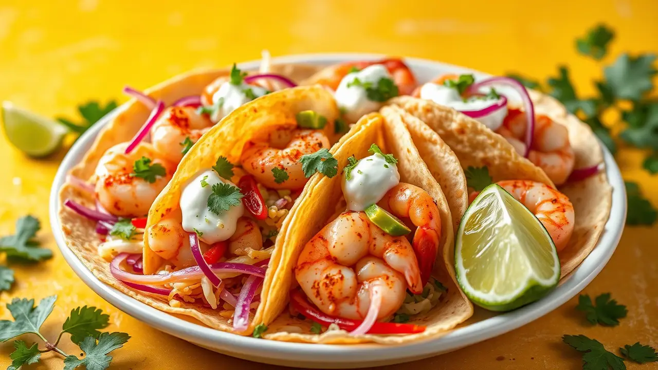 These shrimp tacos are bursting with flavor and sure to impress! They feature perfectly seasoned shrimp, a zesty lime crema, and a crunchy slaw, all wrapped in warm tortillas. Great for a weeknight dinner or a fiesta with friends, they can be customized with your favorite toppings!
