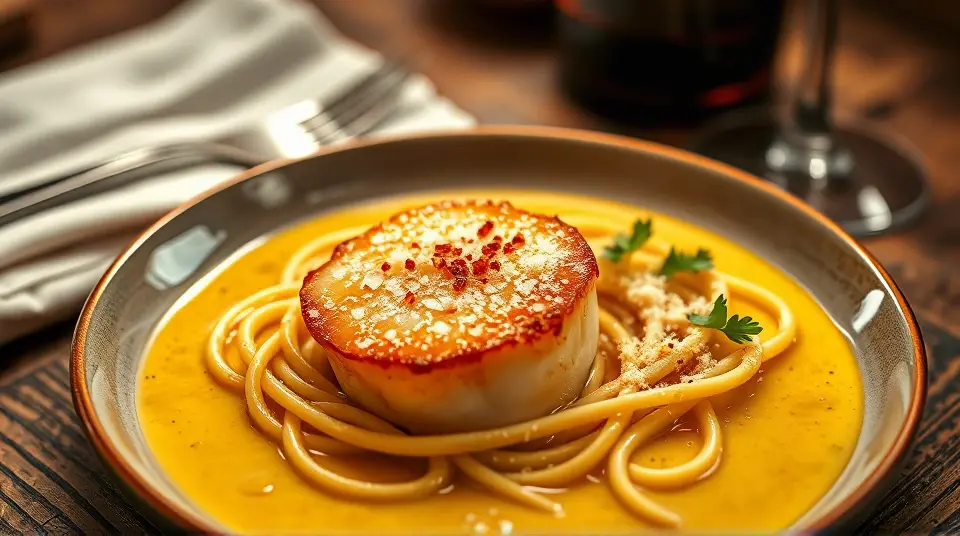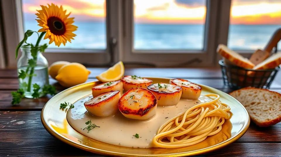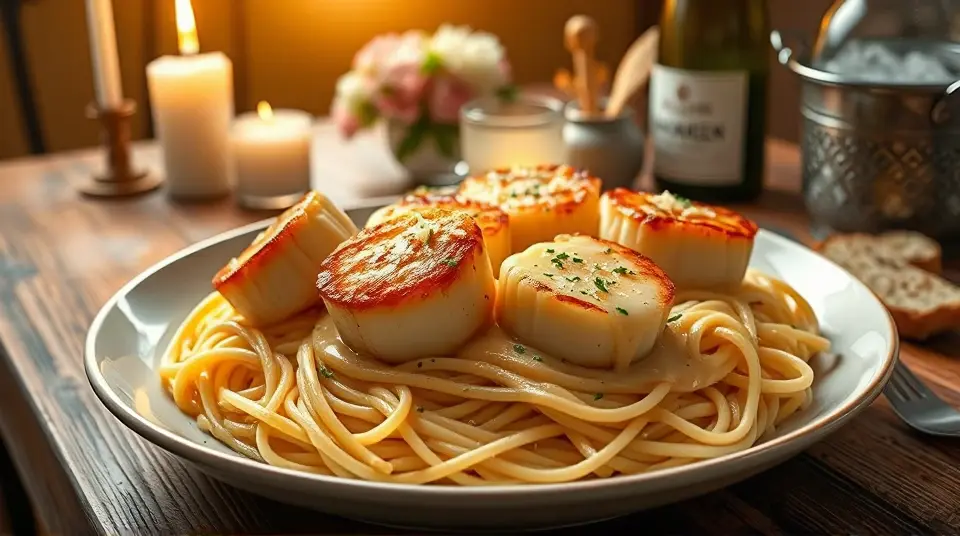 # Seared Scallops in Creamy Garlic Sauce 🐚🧄 This luxurious dish highlights the delicate flavor of fresh scallops, perfectly seared and smothered in a rich and creamy garlic sauce. It's a restaurant-quality meal you can whip up in your own kitchen, making it ideal for romantic dinners or special occasions. Serve it over pasta, with crusty bread, or alongside sautéed vegetables for an unforgettable feast! 🍝🍞 ## Ingredients ### For the scallops - 1 lb large sea scallops (about 12-16) - 2 tablespoons olive oil - Salt and pepper, to taste - 1 tablespoon fresh lemon juice ### For the creamy garlic sauce - 4 cloves garlic, minced - 1 cup heavy cream - 1/2 cup chicken or vegetable broth - 1/4 cup grated Parmesan cheese - 2 tablespoons unsalted butter - 1 tablespoon chopped fresh parsley (for garnish) - Optional: pinch of red pepper flakes for added heat ## Instructions 1. **Prepare the scallops**: Pat the scallops dry with paper towels to remove excess moisture. This step is crucial for achieving a nice sear! Season both sides lightly with salt and pepper. > 🥄 If moisture is left on the scallops, they will steam rather than sear, resulting in a less desirable texture. 2. **Sear the scallops**: In a large skillet, heat olive oil over medium-high heat. When the oil is hot (but not smoking), place the scallops in the pan, making sure they are not overcrowded. Sear for about 2-3 minutes on each side until they develop a golden-brown crust. Remove from the skillet and set aside. 3. **Make the sauce**: In the same skillet, add the butter and minced garlic. Sauté for about 30 seconds until fragrant, being careful not to burn the garlic. Pour in the chicken or vegetable broth and let it simmer for a minute. 4. **Add the cream**: Stir in the heavy cream and Parmesan cheese, mixing well until the cheese melts into the sauce. Allow it to simmer for a few minutes until slightly thickened. You can also add red pepper flakes here if you like a kick! > 🧊 Adjust the seasoning with more salt and pepper to taste. If you prefer a thinner sauce, add more broth, or if you want it thicker, let it simmer a bit longer. 5. **Combine**: Return the scallops to the skillet and drizzle with lemon juice, allowing them to warm through and soak up the flavors of the sauce. 6. **Serve**: Plate the scallops and generously spoon over the creamy garlic sauce. Garnish with chopped parsley for a fresh touch. > 🍽️ Consider serving this dish with a side of angel hair pasta or crispy garlic bread to soak up that luscious sauce! ## Variations - **Herbed**: Add fresh herbs such as tarragon or thyme to the sauce for an aromatic twist. 🪴 - **Citrus**: Incorporate a zest of lemon or lime into the sauce for a bright and zesty flavor. - **Substitution**: If you can't find scallops, try this recipe with shrimp or chicken breast for a different yet equally delicious option. - **Low-carb**: Serve over sautéed zucchini noodles instead of pasta for a healthier, low-carb option. 🥒 Enjoy this decadent dish that’s sure to impress anyone at your dinner table! 🌟name