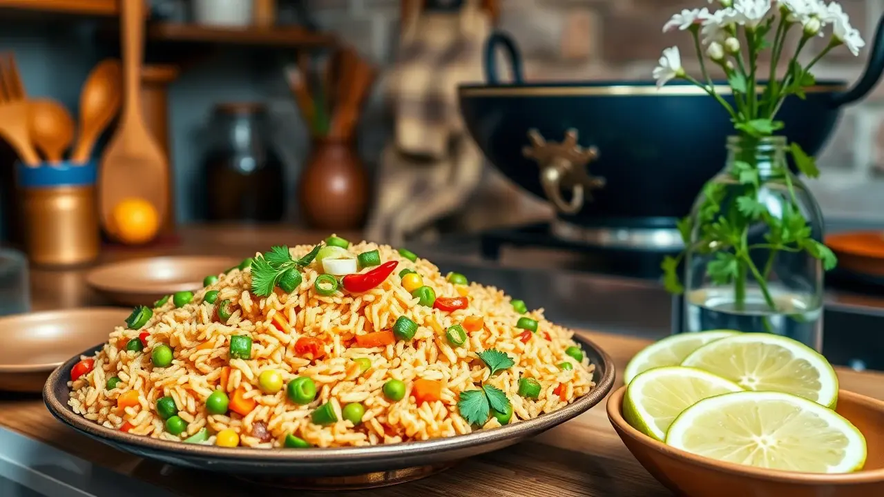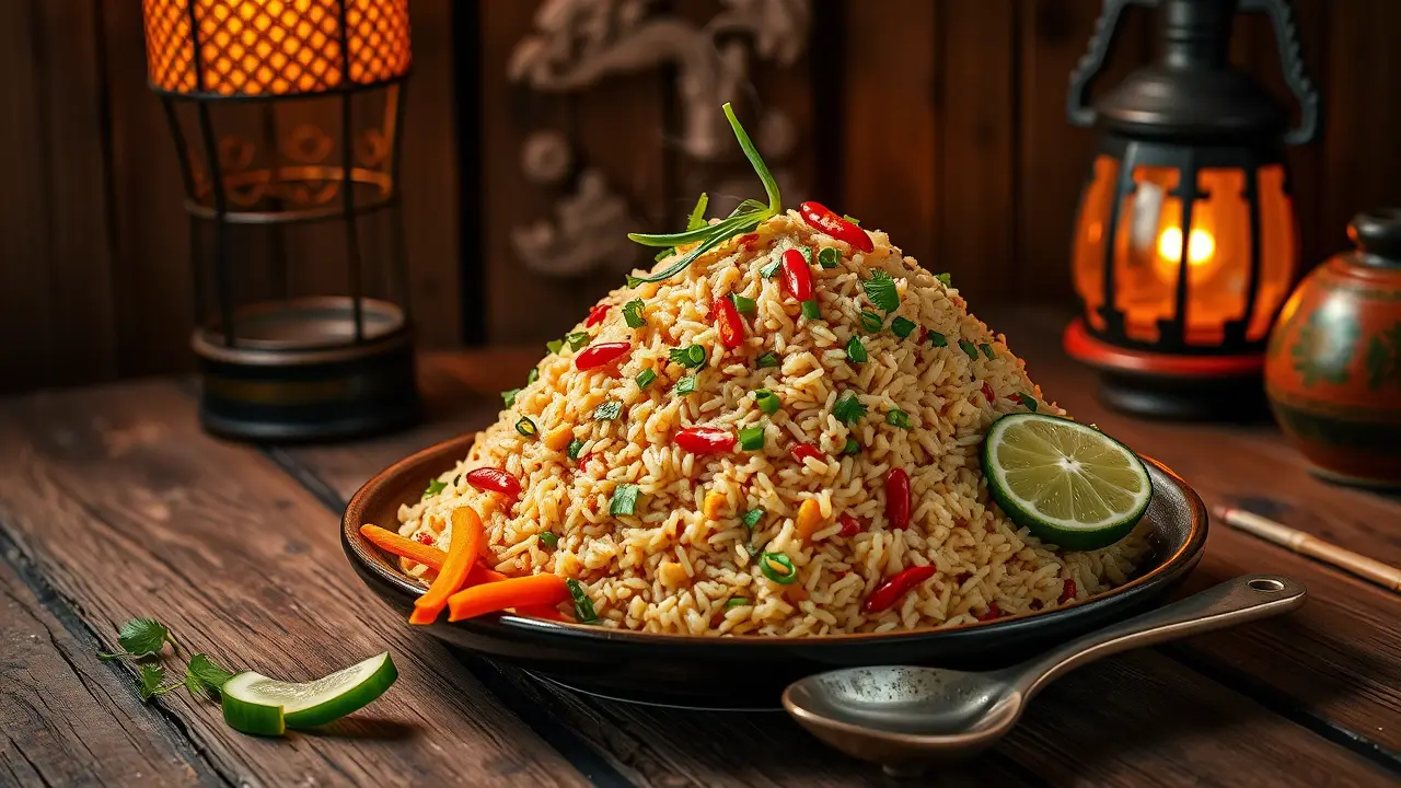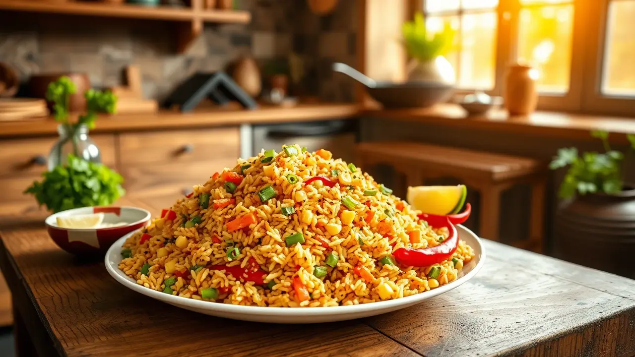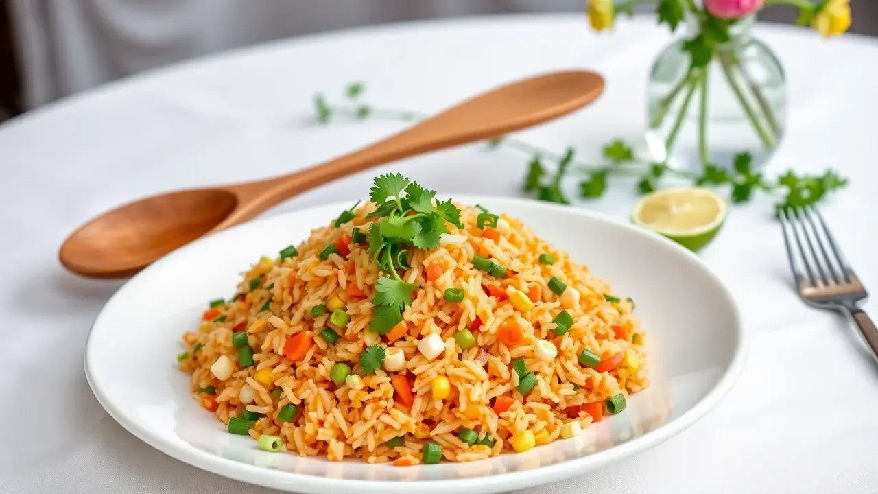 # Spicy Veggie Delight Fried Rice 🍚🌶️ This vibrant and flavorful vegetable fried rice is a quick and satisfying meal that’s perfect for a weeknight dinner or meal prep. Packed with fresh veggies and a hint of spice, it’s not only delicious but also versatile enough to customize with your favorite ingredients. Enjoy it on its own or as a side dish to your favorite Asian-inspired meals! ## Ingredients ### For the fried rice - 2 cups cooked jasmine rice (preferably day-old) - 1 tablespoon vegetable oil (or sesame oil for extra flavor) - 1 cup mixed vegetables (carrots, peas, bell peppers, corn) - 1 small onion, finely chopped - 2 cloves garlic, minced - 1-inch piece ginger, grated - 2 tablespoons soy sauce - 1 tablespoon oyster sauce (or a vegan alternative) - 1 teaspoon chili paste (adjust to taste) - 2 green onions, chopped - Salt and pepper to taste - Optional: 2 eggs, beaten (or tofu scramble for a vegan option) ### For garnish - Fresh cilantro, chopped - Lime wedges - Sliced red chili for heat ## Instructions - Heat the vegetable oil in a large skillet or wok over medium-high heat. Add the chopped onion and sauté until translucent, about 3-4 minutes. > 🔥 Make sure your pan is hot enough to avoid the vegetables steaming rather than frying. This adds a lovely char to the rice! - Add the minced garlic and grated ginger, and cook for another minute until fragrant. - Toss in the mixed vegetables and stir-fry for about 3-5 minutes until they’re tender yet vibrant. If you're using any proteins like chicken or shrimp, add them at this stage. - Push the veggies to the side of the pan and pour in the beaten eggs. Scramble them gently until cooked, then mix them with the vegetables. - Introduce the cooked rice into the pan, breaking up any clumps. Drizzle the soy sauce, oyster sauce, and chili paste over the rice, and stir everything together until well mixed. > 🍚 The key to perfect fried rice is using cold, day-old rice, as it helps prevent mushiness and allows each grain to fry properly. - Season with salt, pepper, and additional chili paste if you like it spicier. Stir in the chopped green onions right before serving. - Transfer the fried rice to a serving dish, garnish with fresh cilantro, and serve with lime wedges and sliced red chili on the side for an extra kick! ## Variations - **Add protein**: Include diced chicken, beef, or shrimp for more substance. For a vegetarian option, add tofu or tempeh. - **Spice it up**: Mix in a splash of sriracha or more chili paste if you love heat! 🌶️ - **Change it up**: Substitute basmati or brown rice for a different texture and flavor. - **Herbaceous twist**: Toss in a handful of fresh basil or mint for a refreshing touch! - **Low carb**: Use cauliflower rice instead of jasmine rice for a lighter, veggie-packed version. Enjoy your Spicy Veggie Delight Fried Rice, a colorful and wholesome feast that delights the taste buds! 🥢✨name
