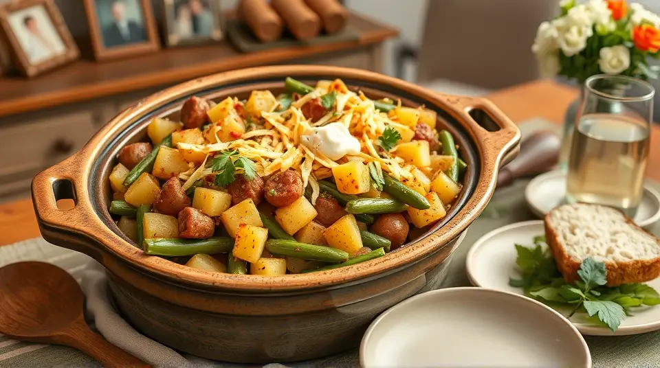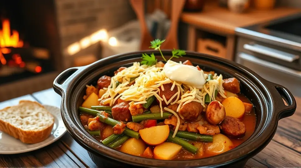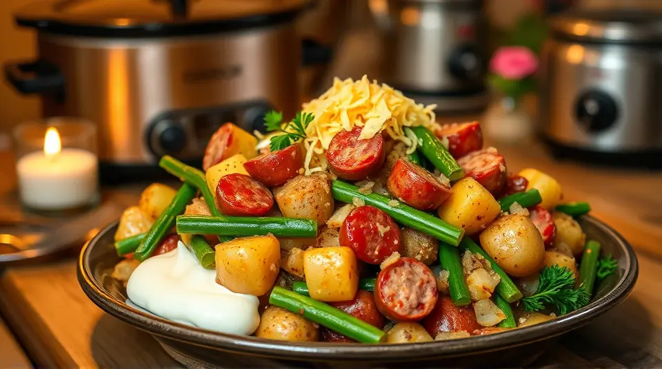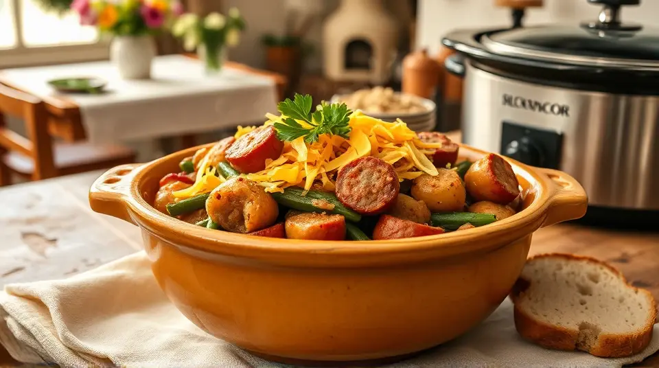 Hearty Sausage Green Bean Potato Casserole for the Slow Cooker 🌿🥔