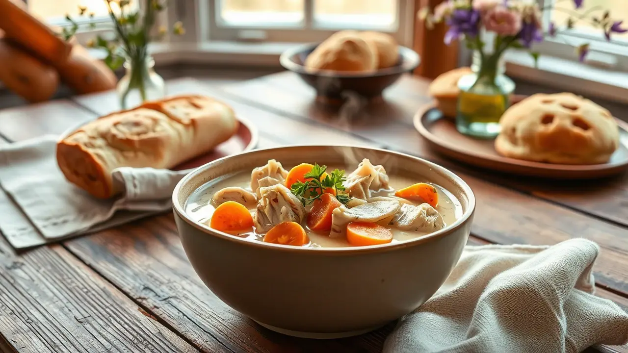 # Creamy Chicken Stew for the Slow Cooker 🍲🍗 This comforting creamy chicken stew is the epitome of cozy meals! It's perfect for chilly evenings and packed with hearty vegetables, tender chicken, and savory herbs. You can set it in the morning and come home to a warm, delicious dinner. Plus, you can easily tweak the ingredients based on what you have at hand! ## Ingredients ### For the stew - 2 lbs boneless, skinless chicken thighs or breasts, cut into bite-sized pieces - 4 medium carrots, sliced - 3 medium potatoes, diced - 1 onion, chopped - 3 cloves garlic, minced - 1 cup frozen peas - 4 cups chicken broth - 1 cup heavy cream or coconut milk - 2 teaspoons dried thyme - 1 teaspoon dried rosemary - Salt and pepper to taste ### For the garnish - Fresh parsley, chopped - Crusty bread or biscuits for serving ## Instructions - In your slow cooker, combine the chicken, carrots, potatoes, onion, garlic, thyme, rosemary, salt, and pepper. Pour in the chicken broth and give everything a good stir. > 🥄 For added depth of flavor, consider searing the chicken pieces in a skillet before adding them to the slow cooker. This will give your stew a richer taste! - Cover and cook on low for 6-8 hours or on high for 3-4 hours until the chicken is cooked through and the vegetables are tender. - About 30 minutes before serving, stir in the heavy cream (or coconut milk) and frozen peas. Allow the stew to continue cooking until heated through. > 🥣 If you want a thicker stew, you can add a cornstarch slurry (1 tablespoon cornstarch mixed with 1 tablespoon water) to the mix during the last 30 minutes. - Once the stew is ready, serve it in bowls and garnish with chopped parsley for a fresh touch. Pair it with crusty bread or warm biscuits to soak up all the creamy goodness! ## Variations - **Vegetarian**: Substitute the chicken with hearty vegetables like mushrooms, zucchini, and bell peppers, and use vegetable broth instead of chicken broth. - **Spicy**: Add a pinch of red pepper flakes or diced jalapeños to give the stew a kick! - **Herbaceous**: Experiment with different herbs like sage or oregano for a unique flavor profile. - **Instant Pot**: Use the sauté function to cook the onions and garlic first, then add the remaining ingredients. Pressure cook on high for 10 minutes, and release the pressure when finished. > 🌱 Feel free to customize the veggies based on what’s in season or what you enjoy most! This stew is forgiving and deliciously adaptable. Enjoy!name