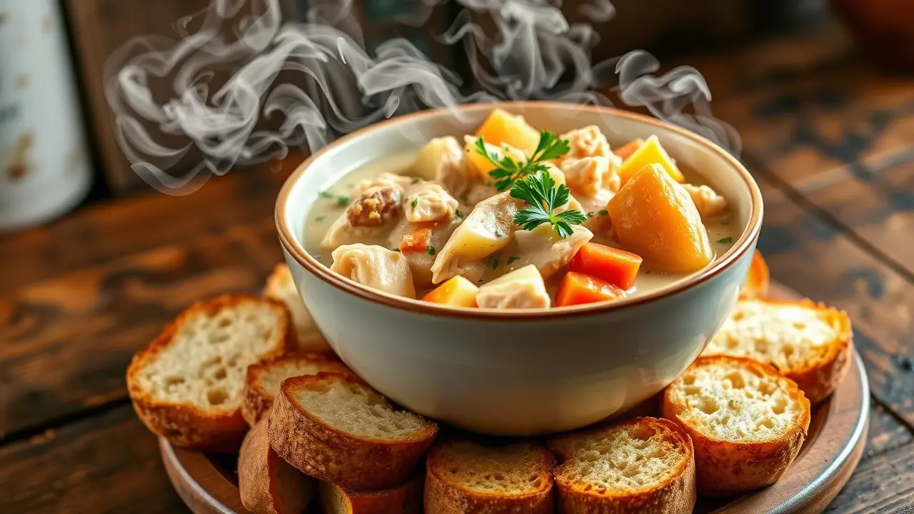 - Crusty bread or biscuits for serving