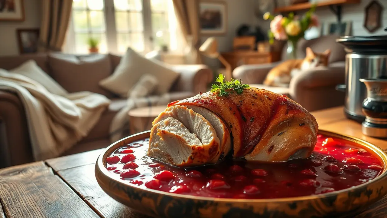 This delectable Slow Cooker Cranberry Turkey Breast is a perfect dish for family gatherings, holidays, or a cozy weekend feast. The turkey breast stews in a luscious blend of tart cranberries and savory herbs, resulting in juicy, flavorful meat that practically falls apart. It's an effortless recipe that lets your slow cooker do the heavy lifting, making entertaining a breeze!