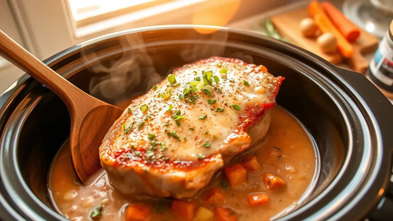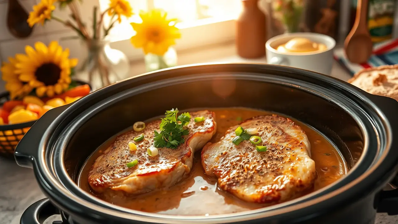π₯ Searing locks in juices and adds a lovely caramelization, but donβt worry if you prefer a simpler method! Simply place the pork chops directly into the slow cooker.