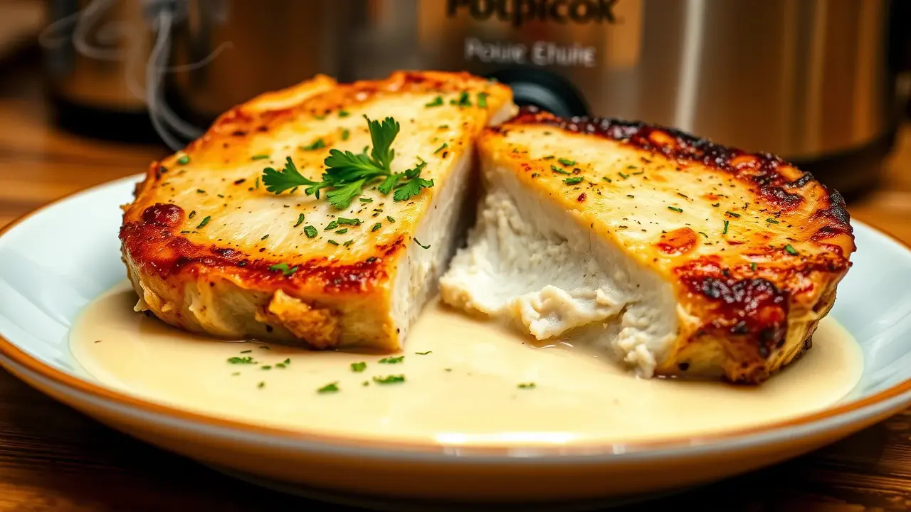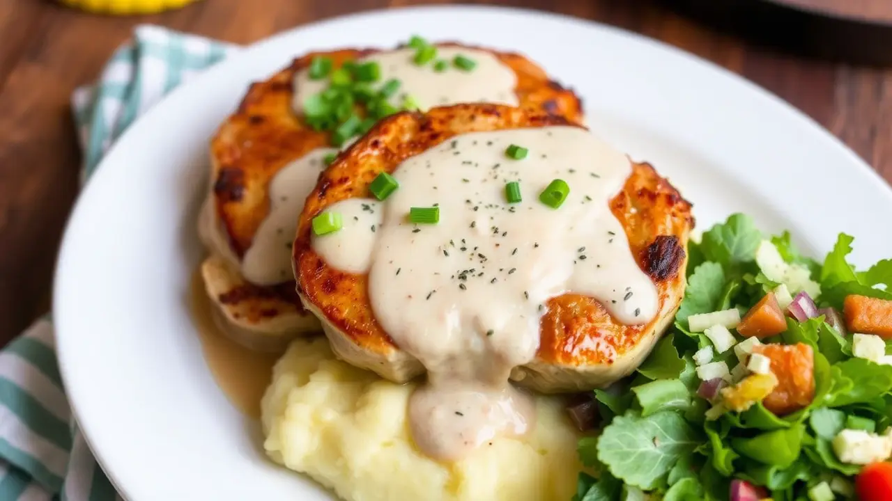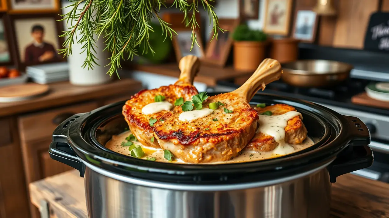 # Savory Slow Cooker Ranch Pork Chops πΏπ This tantalizing recipe is perfect for a busy weeknight or a cozy family gathering. The slow cooker does all the work, resulting in tender and flavorful pork chops infused with zesty ranch seasoning. Pair it with mashed potatoes or a fresh green salad for a complete meal that everyone will love! π ## Ingredients ### For the Pork Chops - 4 bone-in or boneless pork chops (about 1-inch thick) - 1 packet (1 oz) ranch dressing mix - 1 cup of cream of mushroom soup - 1/2 cup of chicken broth - 1 tablespoon of olive oil - Salt and pepper to taste ### For Garnish - Fresh parsley, chopped - Optional: Sliced green onions ## Instructions - **Prep the Pork:** Season the pork chops with salt and pepper on both sides. This adds an extra layer of flavor. - **Sear the Chops (Optional):** In a skillet, heat olive oil over medium-high heat. Sear the pork chops for about 3-4 minutes on each side until they're golden brown. This step enhances the flavor but can be skipped if you're short on time. > π₯ Searing locks in juices and adds a lovely caramelization, but donβt worry if you prefer a simpler method! Simply place the pork chops directly into the slow cooker. - **Mix the Sauce:** In a bowl, combine the ranch dressing mix, cream of mushroom soup, and chicken broth. Mix well until smooth. - **Slow Cook:** Place the pork chops in the slow cooker and pour the ranch sauce over them, making sure they're well-coated. - **Cook:** Cover and cook on low for 6-8 hours or on high for 3-4 hours until the pork chops are tender and thoroughly cooked (internal temperature of 145Β°F). > β³ The longer they cook, the more tender they will become! If you're in a hurry, the high setting works just fine for a delicious meal. - **Serve:** Once done, scoop the sauce over the pork chops and garnish with fresh parsley and sliced green onions for a pop of color and flavor. ## Variations - **Creamy Garlic Ranch:** Add 2 cloves of minced garlic to the sauce mix for a delicious garlic twist. π§ - **Vegetable Medley:** Toss in some baby carrots, diced potatoes, or sliced bell peppers into the slow cooker for a one-pot meal that's hearty and healthy! π₯ - **Spicy Kick:** Mix in a tablespoon of your favorite hot sauce or a pinch of red pepper flakes for some heat! πΆοΈ - **Herbaceous Touch:** Replace ranch seasoning with Italian seasoning for a different flavor profile, or mix both for a unique taste! π± Whether you keep it classic or add your own twist, these savory slow cooker ranch pork chops are bound to impress at any dinner table! Enjoy! π½οΈβ€οΈname