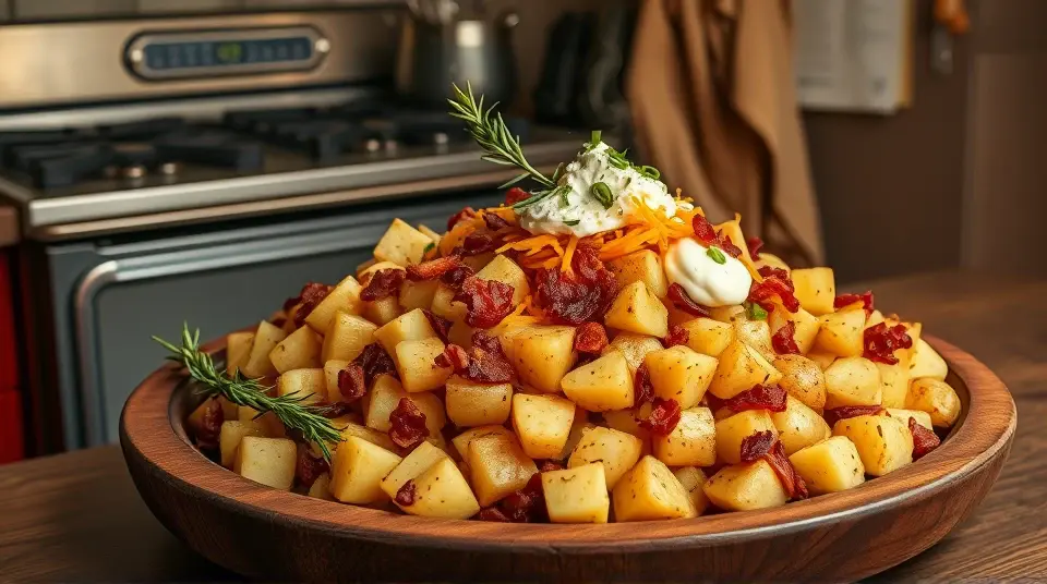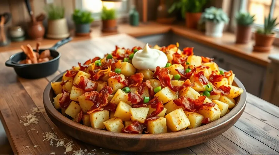 # Slow Cooker Cowboy Potatoes 🥔🤠 These Slow Cooker Cowboy Potatoes are a hearty and flavorful dish that will make your taste buds dance! Perfect for potlucks, family gatherings, or cozy nights in, these potatoes are loaded with flavor and easy to prepare. The combination of crispy bacon, zesty cheese, and savory spices makes this dish irresistibly delicious. Serve as a side or even as a main meal alongside your favorite protein! ## Ingredients ### For the potatoes - 3 lbs russet potatoes, cut into 1-inch cubes - 1 lb crispy bacon, chopped - 1 cup shredded cheddar cheese - 1/2 cup sour cream - 1/2 cup milk - 1 tablespoon ranch seasoning mix - 1 teaspoon garlic powder - 1 teaspoon onion powder - Salt and pepper to taste - 3 green onions, chopped (for garnish) ## Instructions - In a medium skillet, cook the chopped bacon over medium heat until crispy. Remove with a slotted spoon and drain on paper towels. > 🥓 Feel free to save some bacon drippings in the skillet for extra flavor! Just be mindful not to use too much; about a tablespoon should do it. - In a large bowl, combine the cubed potatoes, crispy bacon, cheddar cheese, sour cream, milk, ranch seasoning, garlic powder, onion powder, salt, and pepper. Mix thoroughly until all potatoes are well-coated. - Transfer the potato mixture to the slow cooker, spreading it evenly. > ⏳ For best results, make sure you layer the potatoes gently rather than pressing them down tightly, which allows for even cooking. - Cover and cook on low for 6-8 hours or on high for 3-4 hours, until the potatoes are tender. - Once cooked, stir the mixture gently to combine and let it sit for 10 minutes. This will allow it to cool slightly and the flavors to meld together. - Serve hot, garnished with fresh chopped green onions for a pop of color and flavor! > 🌿 You can also top with a dollop of additional sour cream or more shredded cheese if you’re feeling indulgent! ## Variations - **Loaded Cowboy Potatoes**: Add some jalapeños or diced bell peppers for a spicy kick. You can also top them with more cheese during the last 30 minutes of cooking for a melty finish! 🌶️🧀 - **Veggie-packed**: Stir in some frozen corn, diced tomatoes, or bell peppers for extra veggies and flavor. - **Meatless**: Omit the bacon and try adding some black beans for protein. You can also roast veggies like zucchini and mushrooms separately and mix them in for a hearty vegetarian option! - **Zesty**: Add a splash of hot sauce or your favorite salsa to give these potatoes an extra zing! Enjoy your delicious and comforting Slow Cooker Cowboy Potatoes! They are sure to become a new family favorite! 🥔❤️name