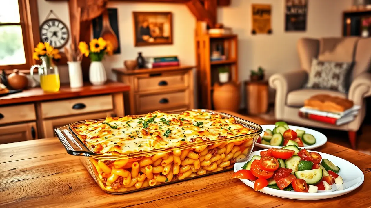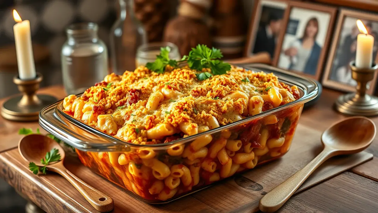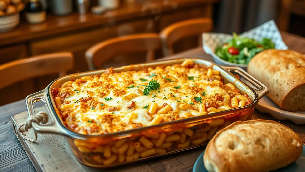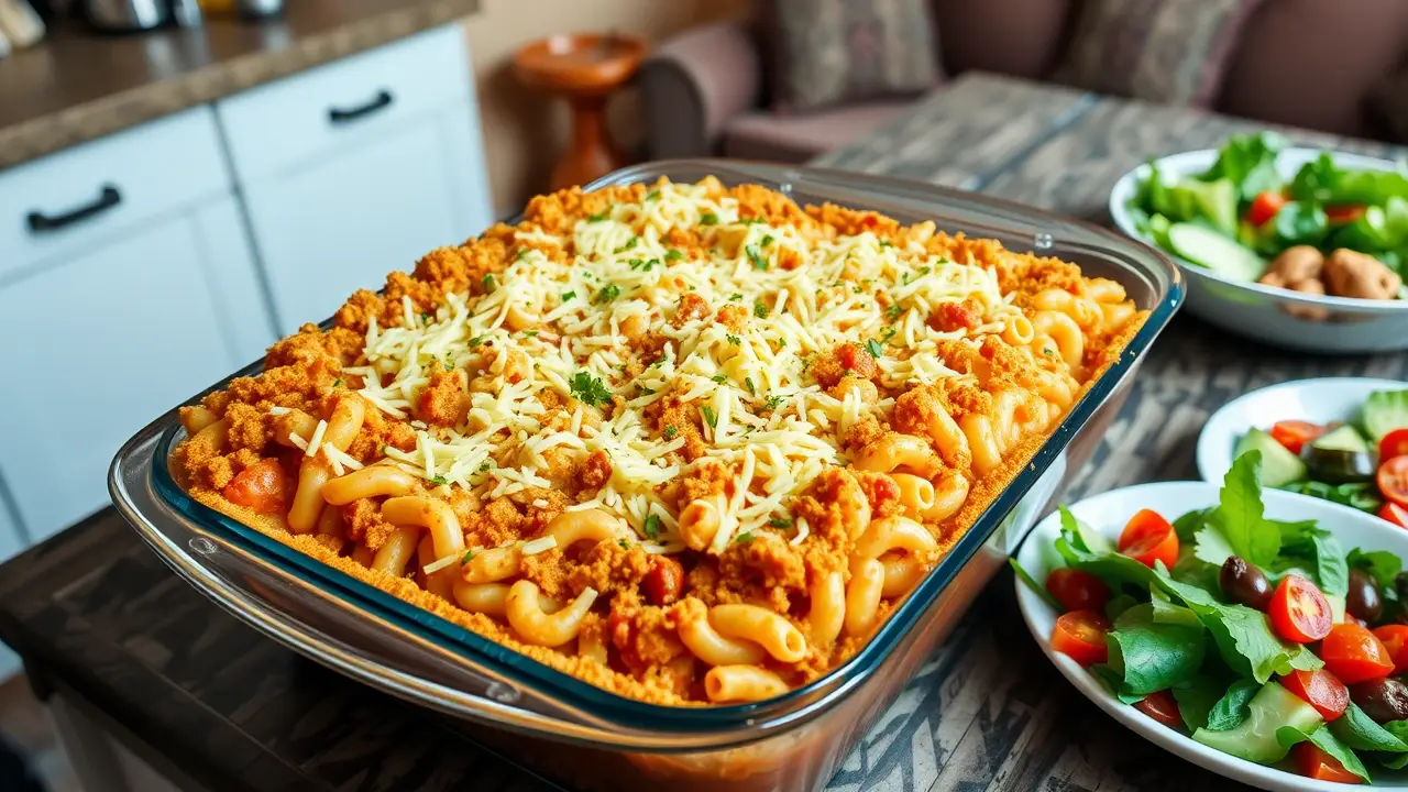 # Comforting Homemade Macaroni Beef Casserole 🍝🥩 This hearty and delicious macaroni beef casserole combines tender pasta with a richly flavored beef sauce, topped with gooey cheese. It's the ultimate comfort food that's perfect for family dinners or any occasion where you need a filling meal. This dish can easily be made ahead of time and baked straight from the fridge for a quick weeknight dinner. Pair it with a side salad or some garlic bread to complete your comforting feast! 🥗🍞 ## Ingredients ### For the casserole - 2 cups elbow macaroni - 1 pound ground beef - 1 small onion, diced - 2 cloves garlic, minced - 1 can (15 oz) tomato sauce - 1 can (14.5 oz) diced tomatoes (with Italian herbs if you prefer) - 1 tablespoon Worcestershire sauce - 1 teaspoon Italian seasoning - Salt and pepper to taste - 1 cup frozen peas (optional) - 1 cup shredded cheddar cheese (plus extra for topping) ### For the topping - 1 cup shredded mozzarella cheese - 1/2 cup breadcrumbs (optional for a crispy topping) - Fresh parsley, chopped (for garnish) ## Instructions 1. Preheat your oven to 350°F (175°C). 2. Cook the elbow macaroni according to package instructions until al dente. Drain and set aside. 3. In a large skillet over medium heat, cook the ground beef with the diced onion until browned. Make sure to break the meat apart as it cooks. Drain excess grease if needed. 4. Add the minced garlic to the skillet and sauté for another minute until fragrant. 5. Stir in the tomato sauce, diced tomatoes, Worcestershire sauce, Italian seasoning, salt, and pepper. If you’re using peas, add them now too. Let the mixture simmer for about 10 minutes, allowing the flavors to meld. > 🍽️ Feel free to mix in some chopped bell peppers or mushrooms for added flavor and nutrition! 6. Combine the cooked macaroni with the beef sauce and add in the cup of cheddar cheese. Stir until well combined. 7. Pour the mixture into a greased 9x13 inch baking dish. Sprinkle the top generously with mozzarella cheese and, if using, the breadcrumbs for a crispy topping. 8. Cover the dish with aluminum foil and bake for 20 minutes. Remove the foil and bake for an additional 10 minutes, or until the cheese is bubbly and golden brown. 9. Let it cool for a few minutes, then garnish with chopped parsley before serving. > 🥄 If you prefer a spicier dish, consider adding a dash of red pepper flakes or some chopped jalapeños to the beef sauce! ## Variations - **Gluten-free**: Substitute elbow macaroni with gluten-free pasta. Adjust cooking times according to the package instructions. - **Vegetarian**: Replace the ground beef with lentils, tempeh, or your favorite vegetables (like zucchini and bell peppers) for a meatless version. - **Buffalo Chicken**: Swap ground beef for shredded chicken mixed with buffalo sauce and ranch dressing for a zingy twist! Serve up a warm dish of this Homemade Macaroni Beef Casserole and enjoy the cozy, comforting flavors that will have everyone coming back for seconds! 🍽️❤️name