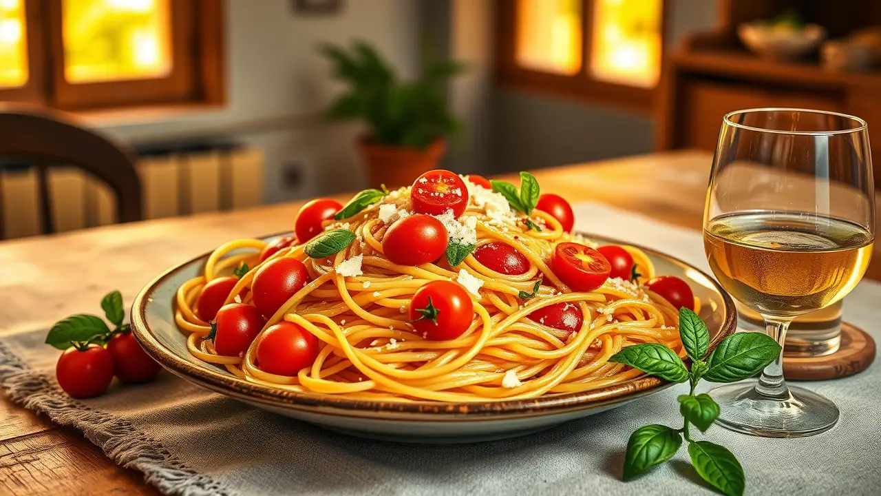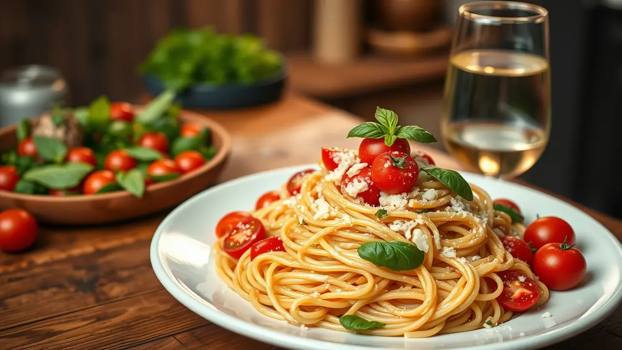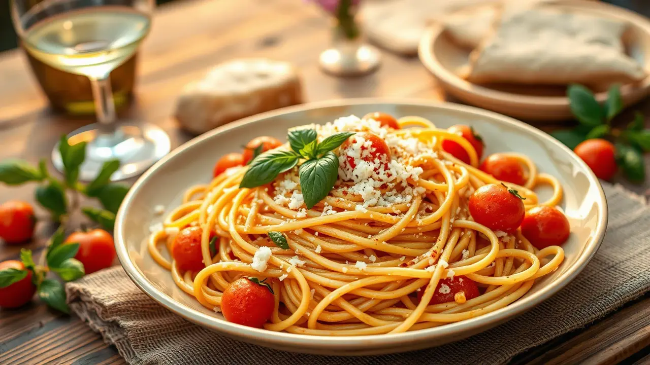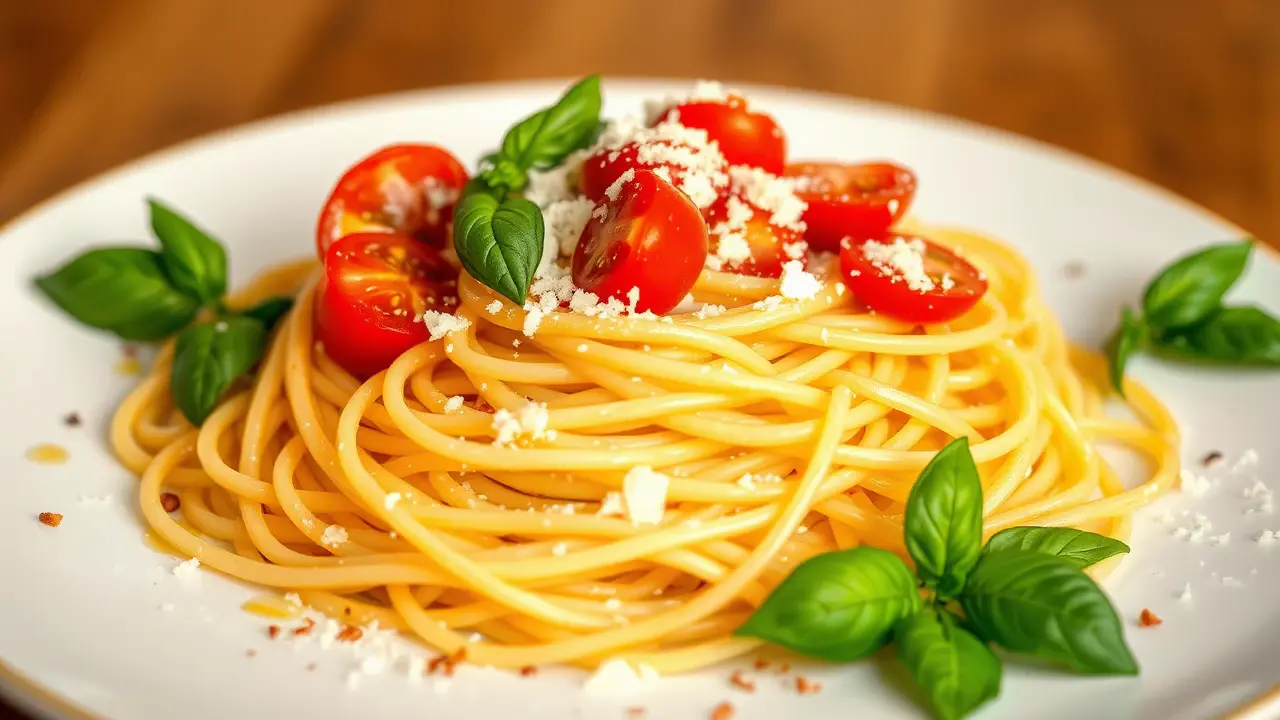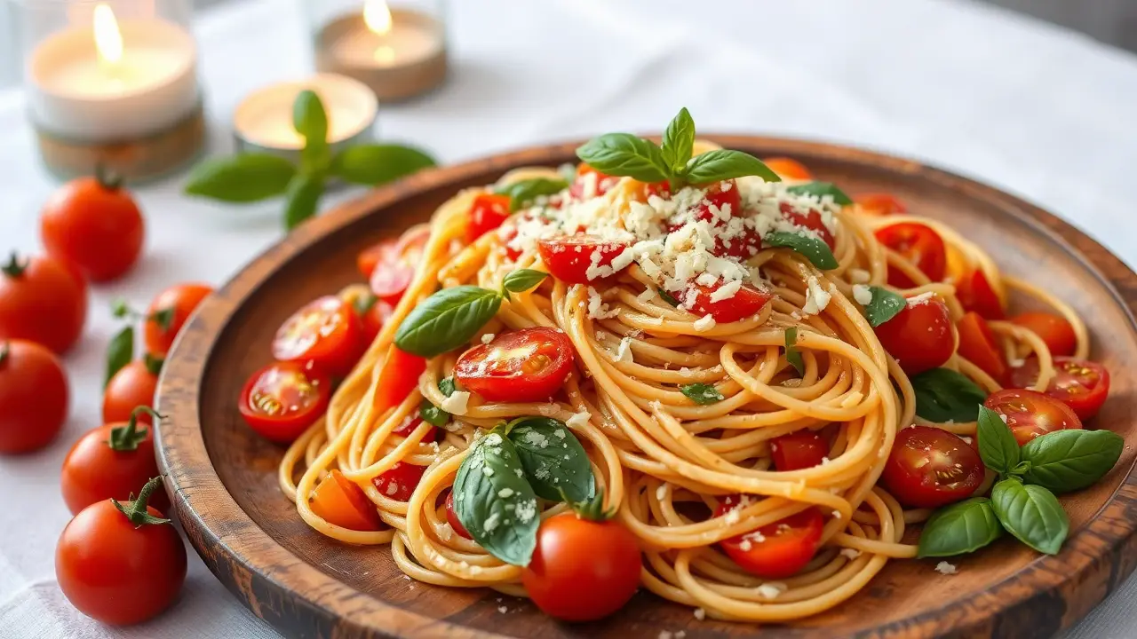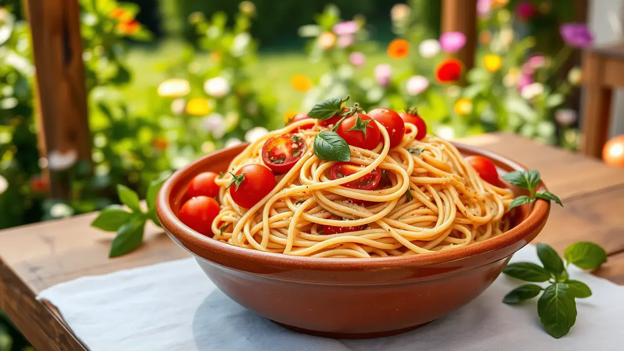 # Easy and Light Spaghetti with Tomato and Basil 🍝🍅 This refreshing spaghetti dish is a simple yet flavorful meal perfect for any season! Made with fresh tomatoes and fragrant basil, it's a delightful option that won't weigh you down. Great for a sunny picnic or a cozy dinner at home, this recipe is effortless, healthy, and bursting with flavor. Pair it with a light salad for a complete meal! 🌿🧄 ## Ingredients ### For the spaghetti - 8 oz whole wheat spaghetti - 2 cups cherry tomatoes, halved - 2 cups fresh basil leaves, torn - 2 cloves garlic, minced - 2 tablespoons extra-virgin olive oil - Salt and pepper to taste - Crushed red pepper flakes (optional) ### For the garnish - Grated Parmesan cheese (optional for serving) - Fresh basil sprigs ## Instructions 1. **Cook the spaghetti**: In a large pot of salted boiling water, cook the whole wheat spaghetti according to package instructions until al dente. Reserve 1/2 cup of pasta water, then drain the spaghetti. > 🍝 Be sure to stir the pasta occasionally while cooking to prevent sticking. 2. **Sauté the garlic**: In a large skillet over medium heat, add the olive oil and minced garlic. Sauté for about 1 minute until fragrant, being careful not to burn the garlic. 3. **Add the tomatoes**: Toss in the halved cherry tomatoes and season with salt, pepper, and crushed red pepper flakes if desired. Cook for about 3-5 minutes until the tomatoes start to soften and release their juices. 4. **Combine**: Add the drained spaghetti to the skillet, along with the reserved pasta water. Toss everything together gently to combine and allow the spaghetti to absorb the flavors for about 2 minutes. 5. **Finish with basil**: Remove the skillet from the heat and stir in the torn basil leaves. Adjust seasoning to taste. > 🌱 For an extra burst of flavor, allow the pasta to rest for a few minutes before serving. This will help the flavors meld beautifully. 6. **Serve**: Plate the spaghetti, and if desired, top with grated Parmesan cheese and extra basil sprigs for garnish. Enjoy warm! ## Variations - **Vegetarian**: This recipe is naturally vegetarian, but you can add sautéed zucchini or spinach for extra veggies! - **Gluten-free**: Substitute the spaghetti with gluten-free pasta for a delicious option that everyone can enjoy! 🍝✨ - **Protein boost**: Add grilled chicken or shrimp for an extra protein kick. Sauté them separately and toss them in just before serving! - **Herb swap**: If fresh basil isn’t available, try using fresh parsley or mint for a different flavor profile. This simple spaghetti recipe will surely become a favorite in your cooking repertoire. Enjoy the vibrant flavors of summer in every bite! 🍅🌞name