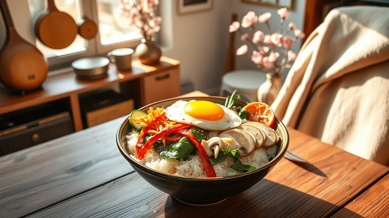 Enjoy your colorful and delicious homemade bibimbap! 🍽️🥳