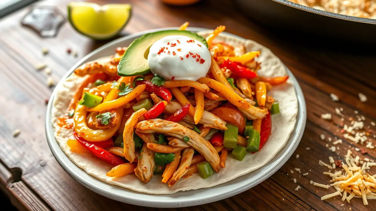 Serve the chicken and veggie mixture in warm tortillas and top with your favorite ingredients like avocado slices, fresh cilantro, a squeeze of lime, and a dollop of sour cream!